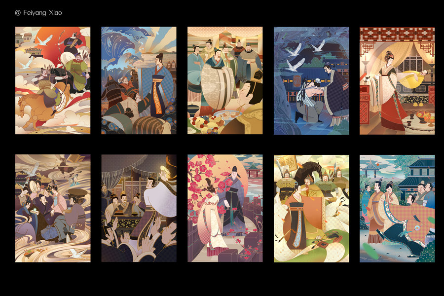 近期插画合集(成都中秋kv+app开屏+音乐氛围感H5)