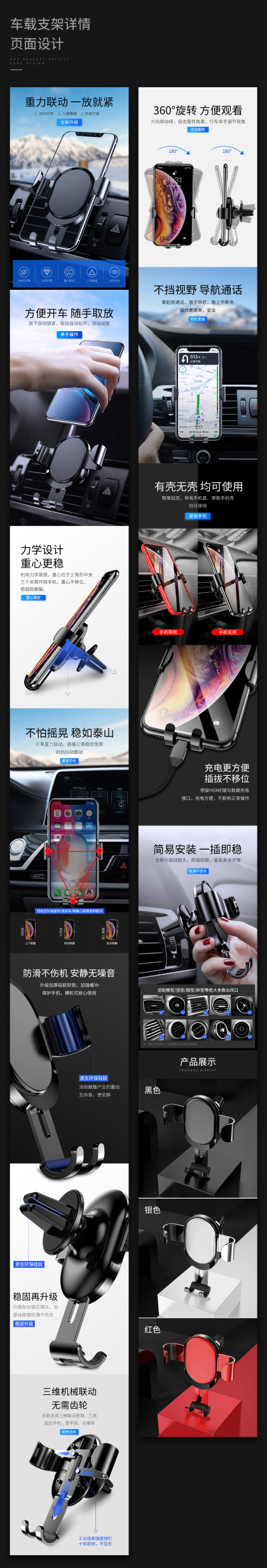 【谷晨电商】车载手机支架精修详情页设计竖屏简洁大气