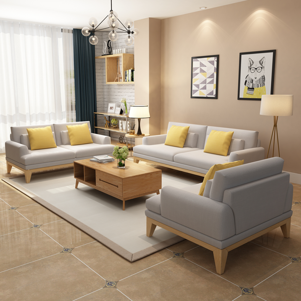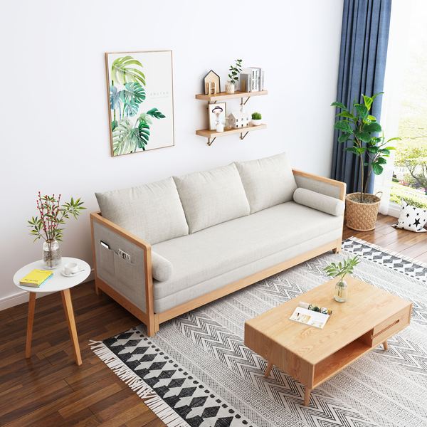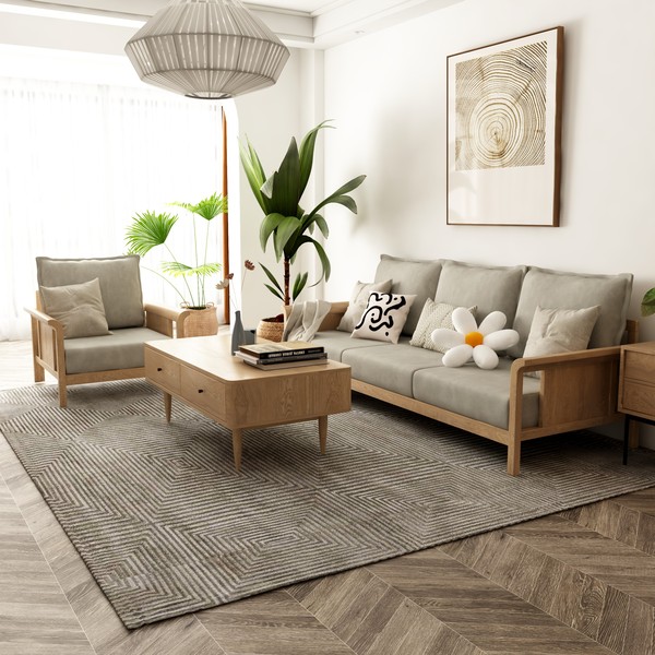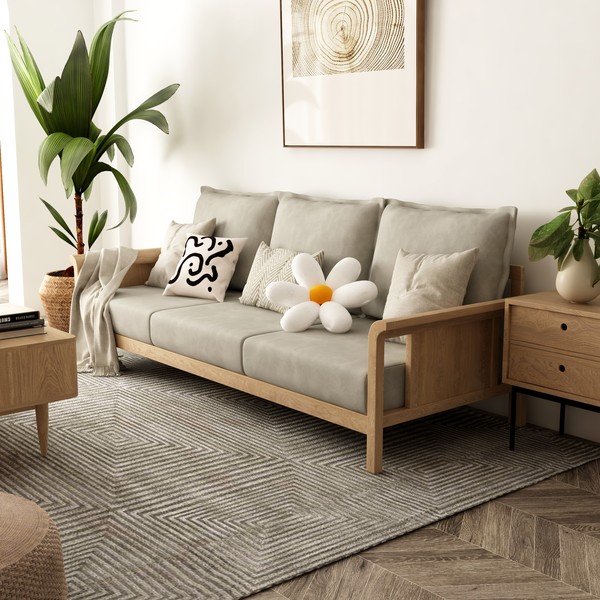 某电商家具产品渲染 - 实木沙发款(原木+梨花木)