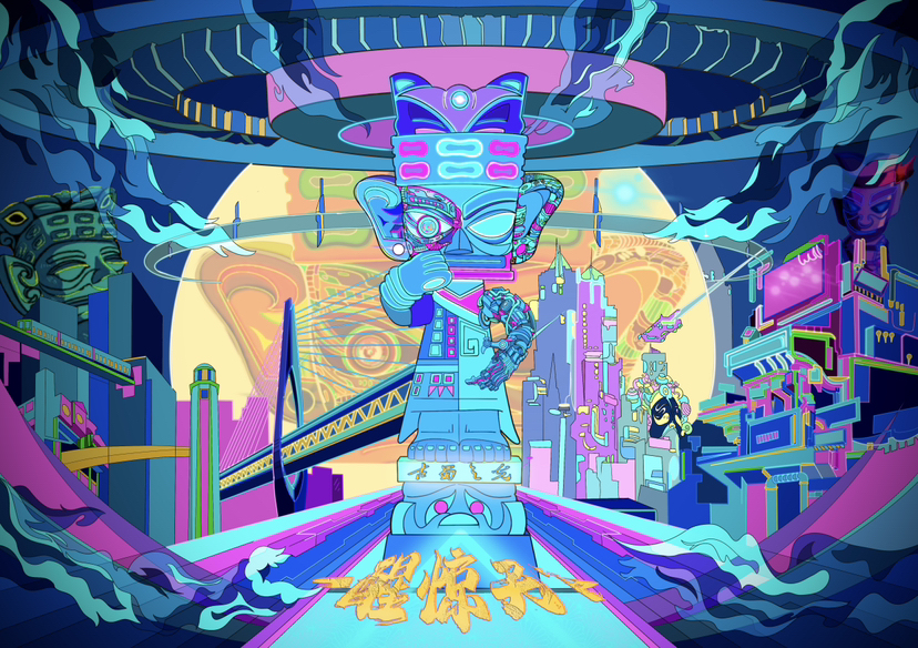 赛博城市未来科幻潮流插画