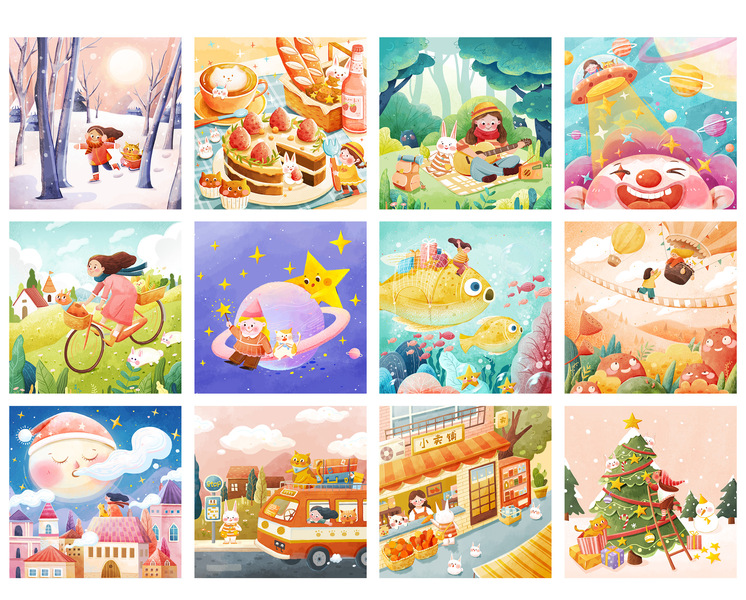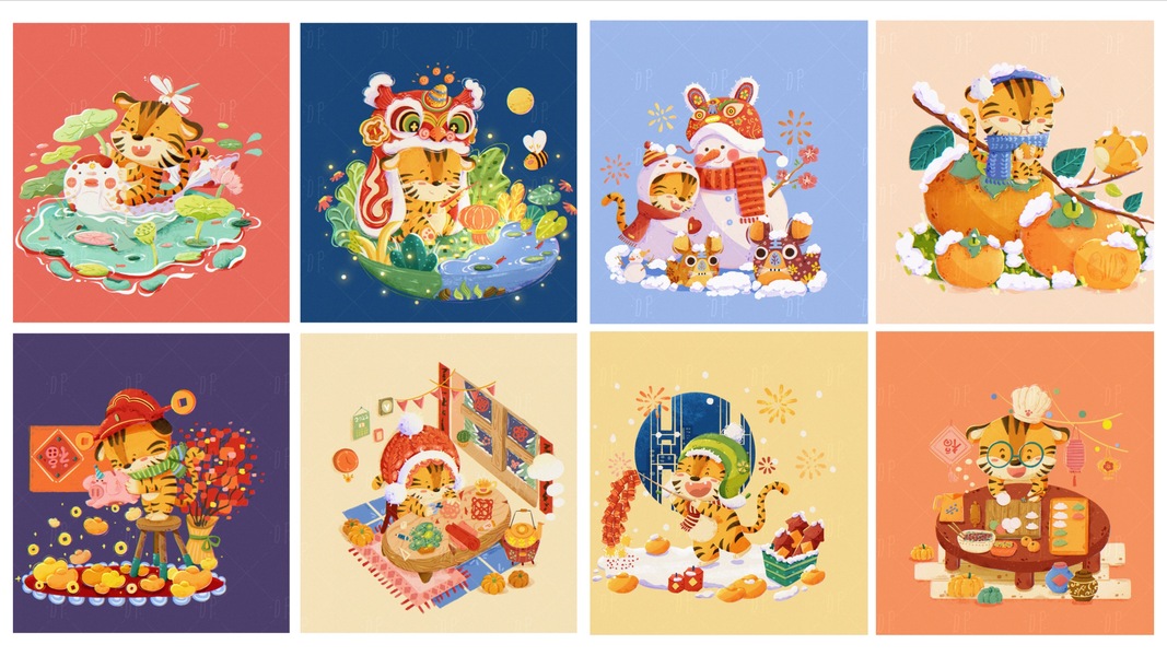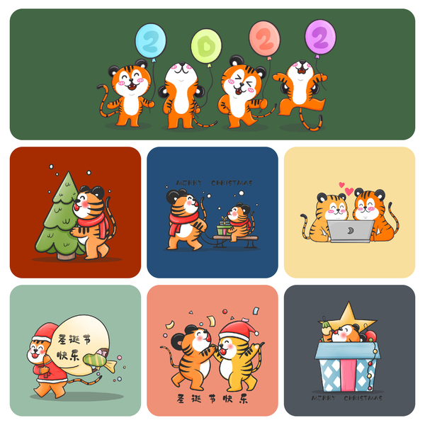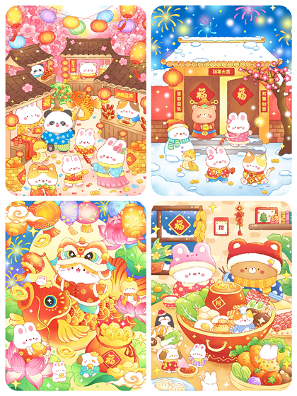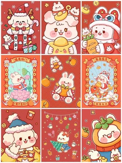 可爱兔年新年红包封面圣诞节新年壁纸插画