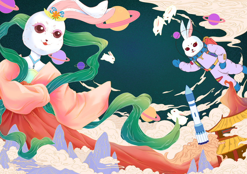 国风插画丨生肖有礼·宇宙兔