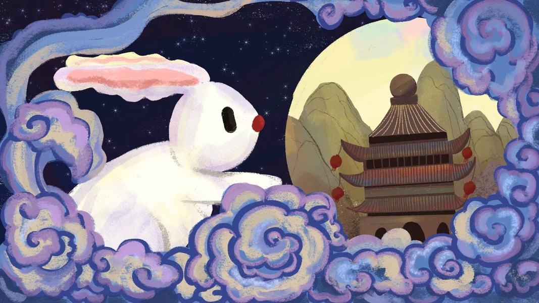 中秋玉兔赏月图