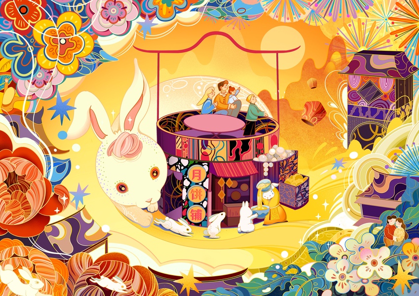 【玉兔宫殿】中秋包装插画