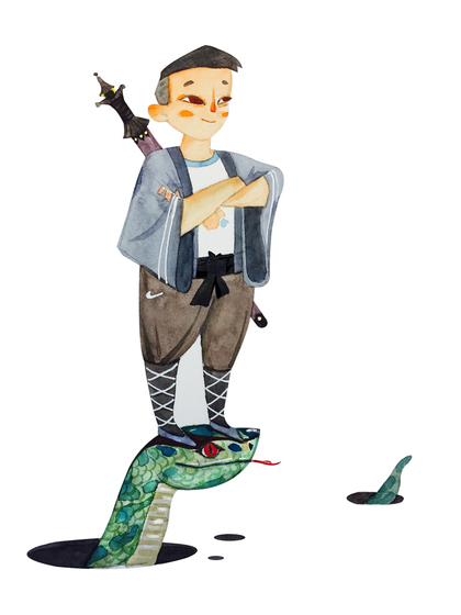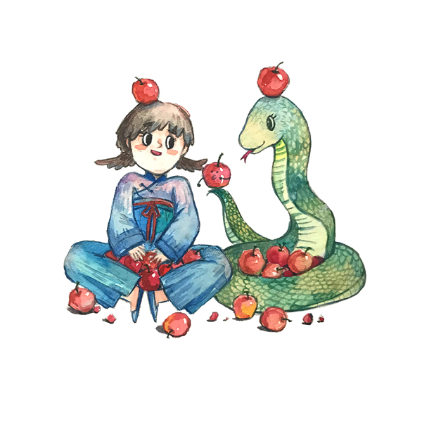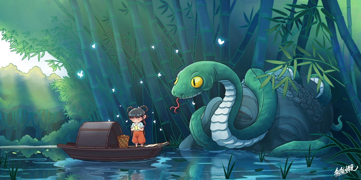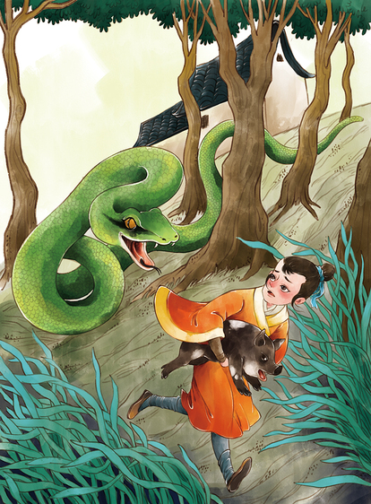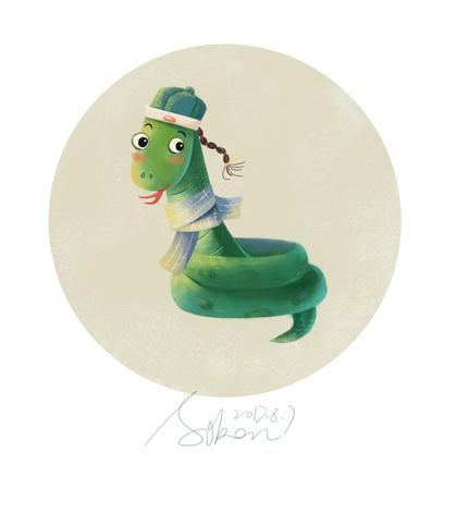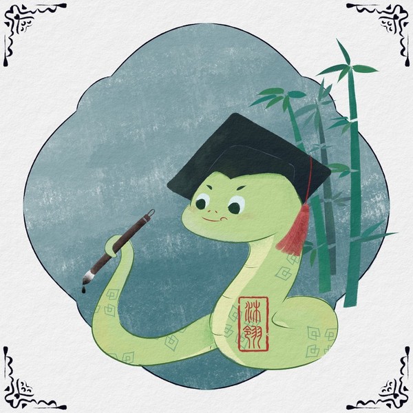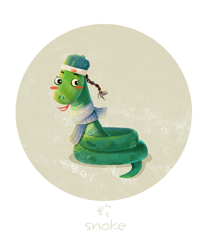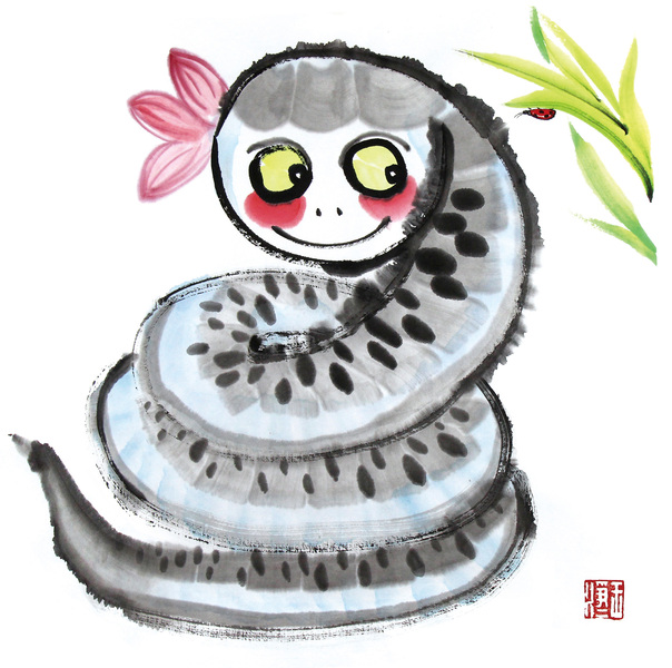 蛇年主题儿童插画和蛇年水墨画 蛇年插画元素