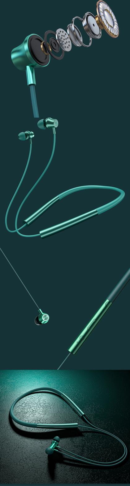 飞鼠设计 I 挂脖蓝牙耳机 详情页设计主图3D维建模渲染