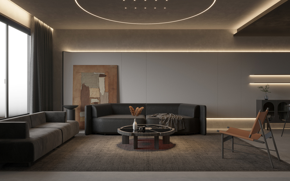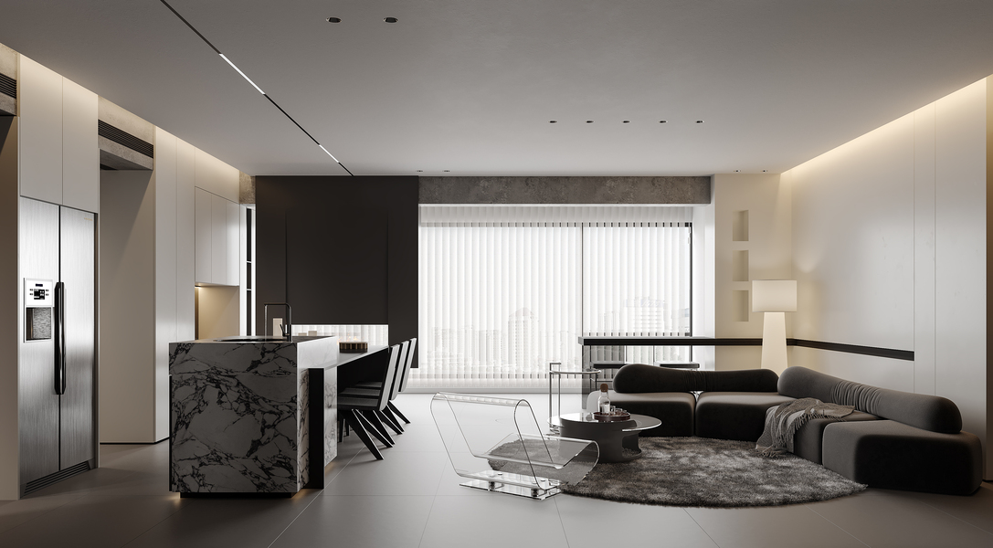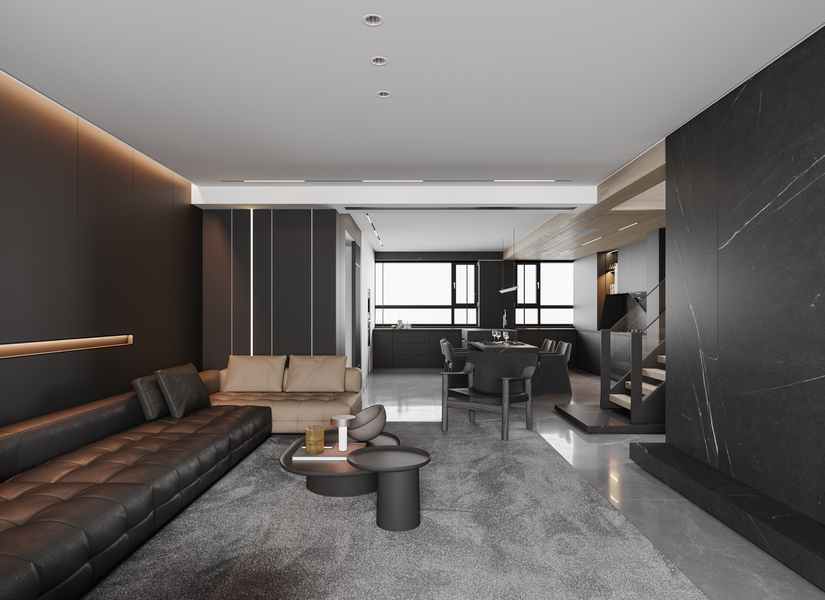 阿召原创设计///暗系轻奢,独特高级暗系客餐厅设计