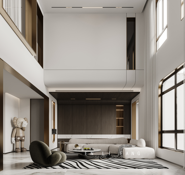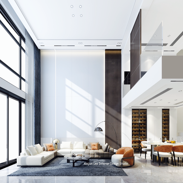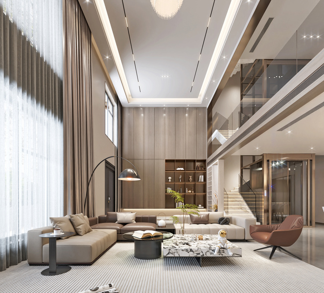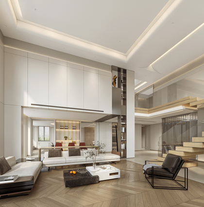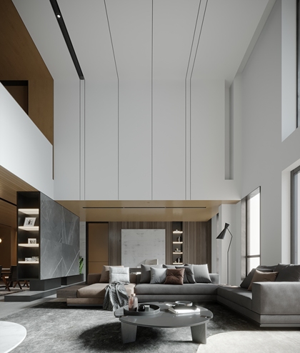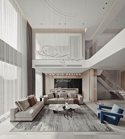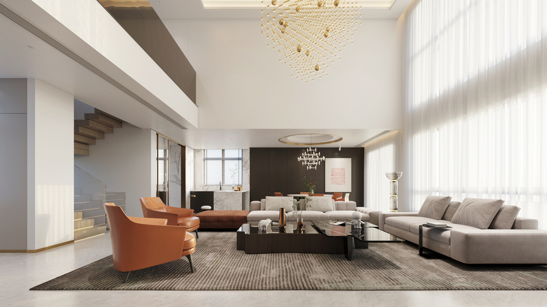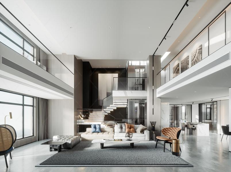 挑空别墅客餐厅效果图表现