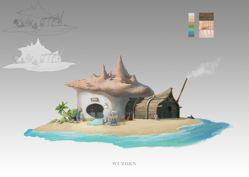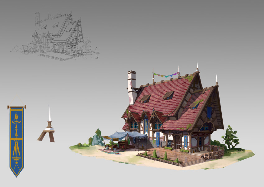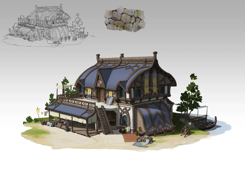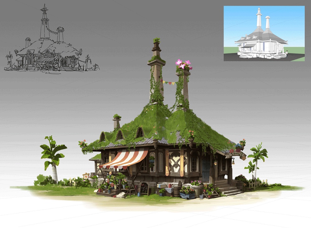 近期几张游戏原画单体建筑的设计-杜震