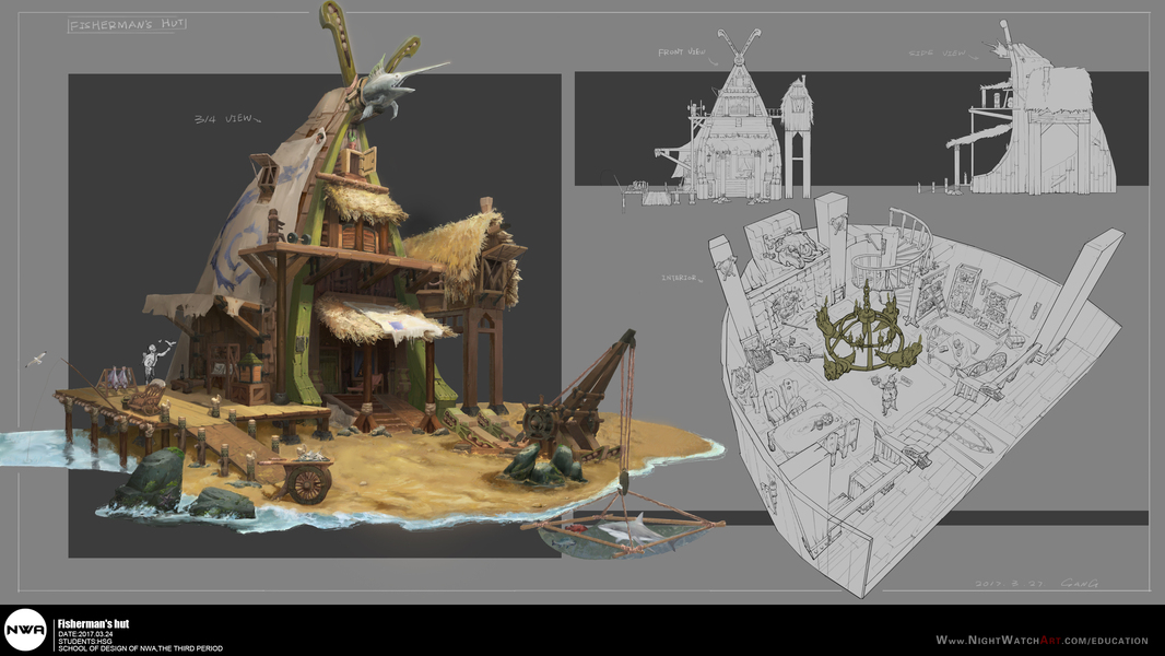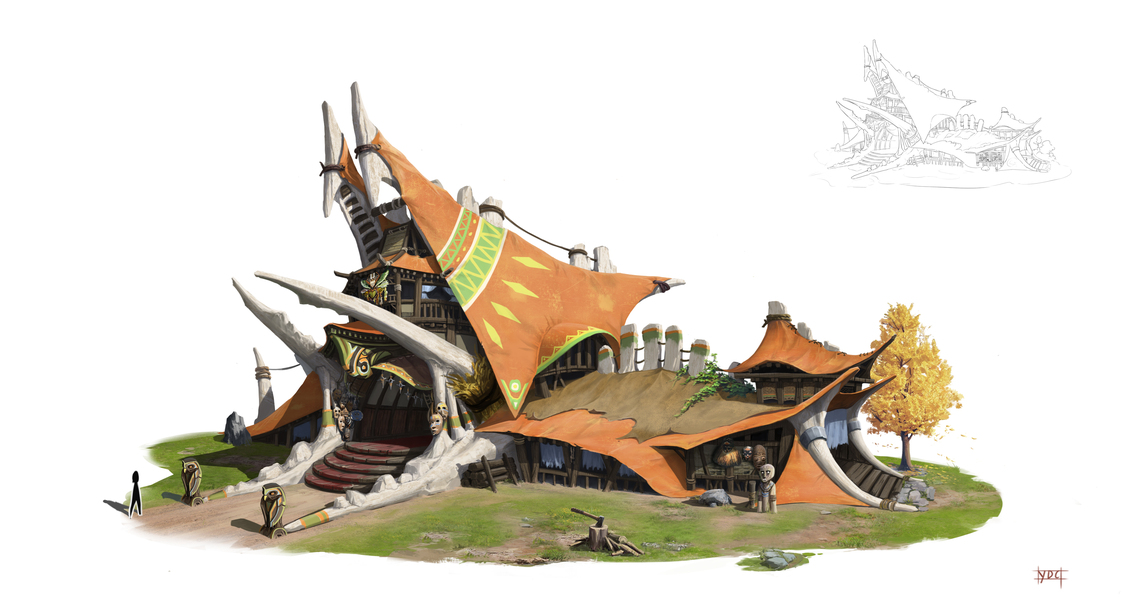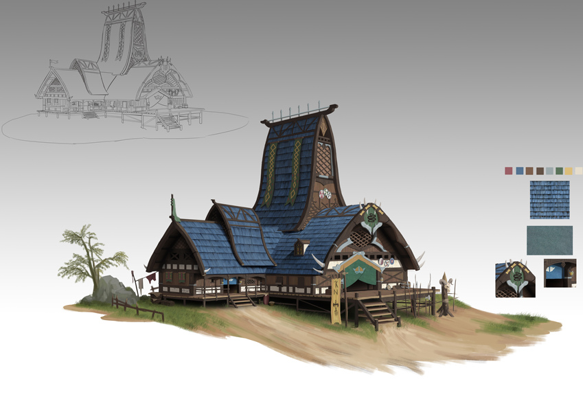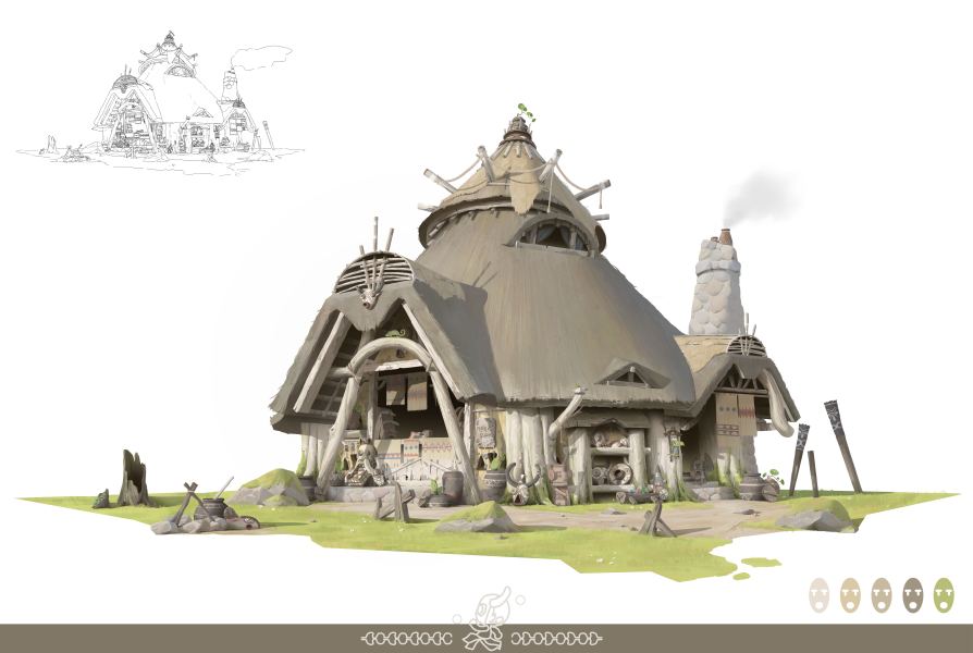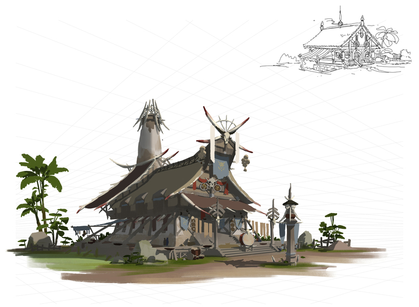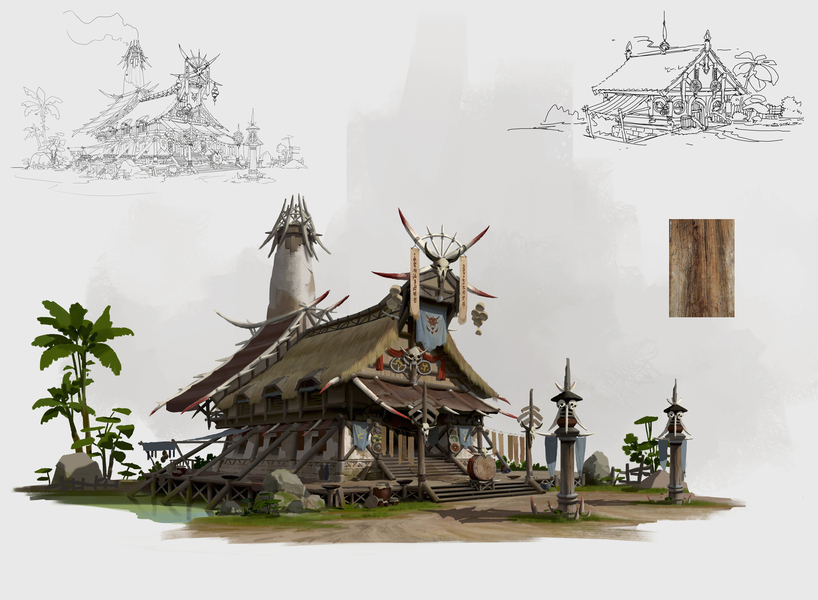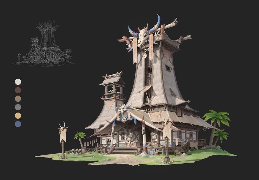 游戏原画场景设计 部落建筑详细过程图