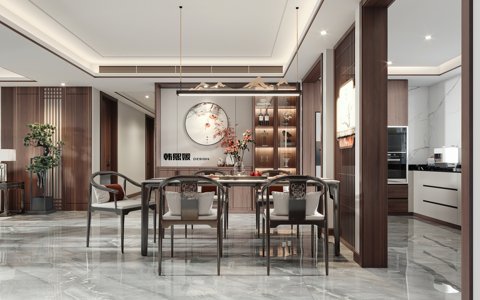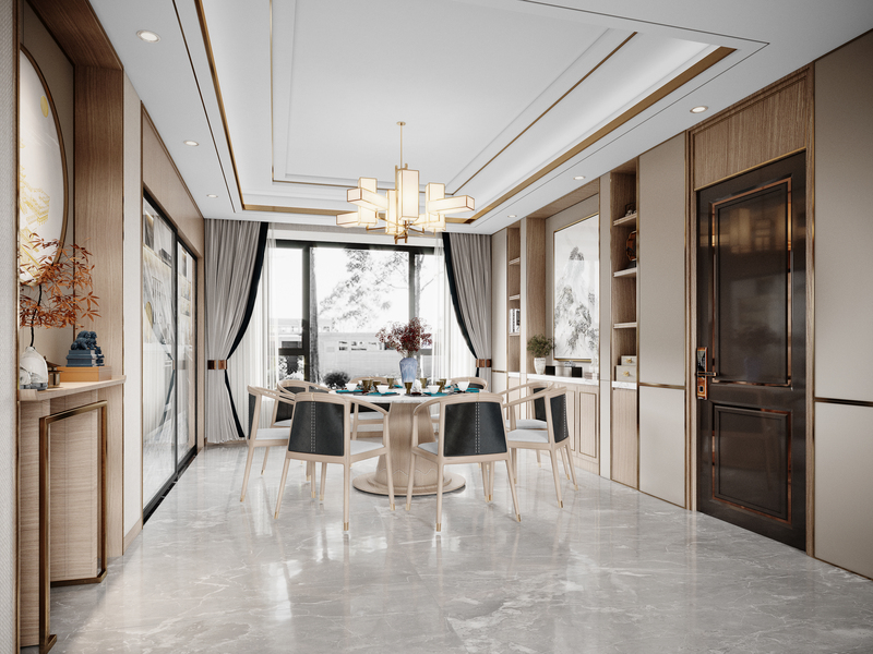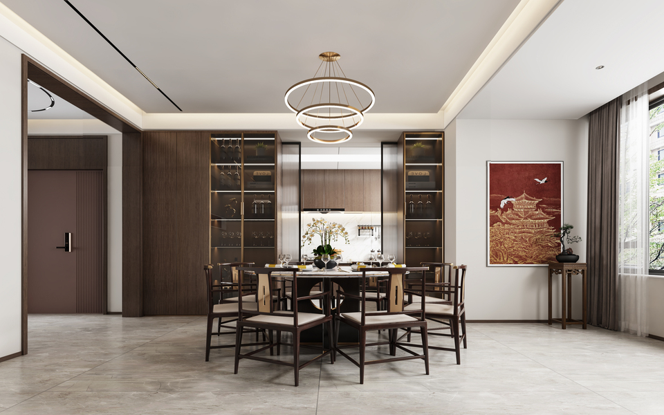 新中式客餐厅效果图表现