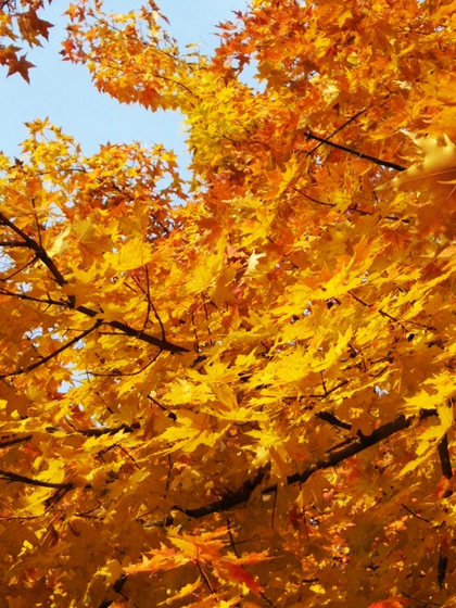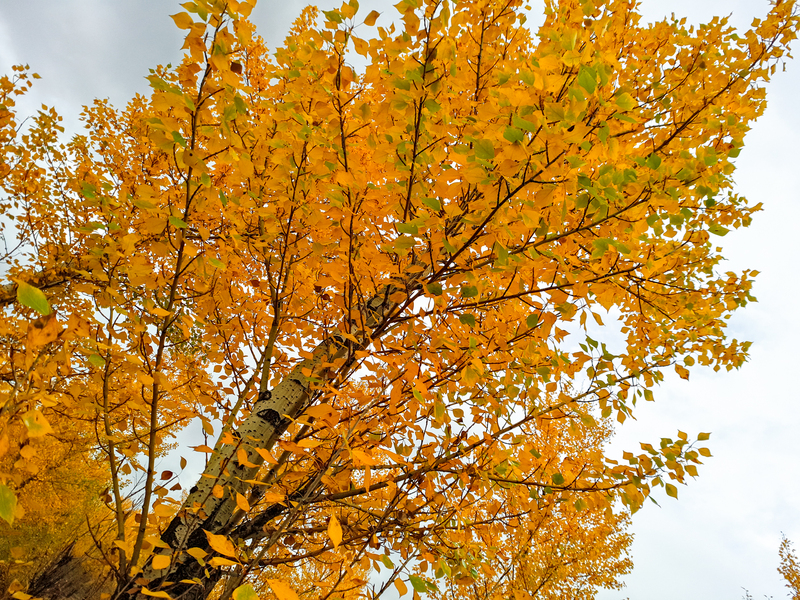 深秋的白杨树林,金黄的树冠,漂亮的纯粹