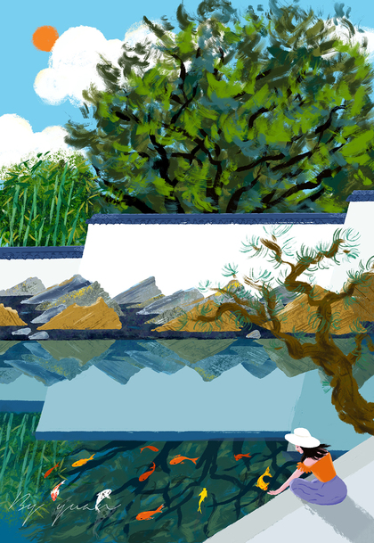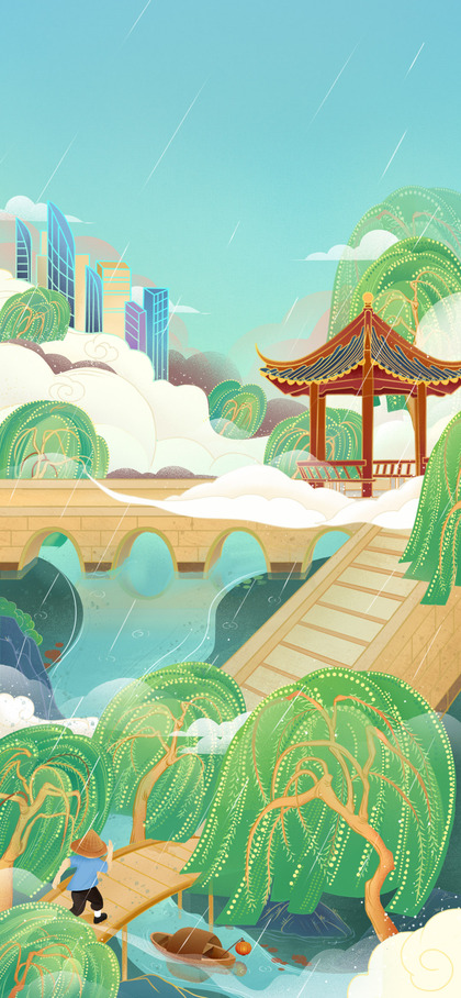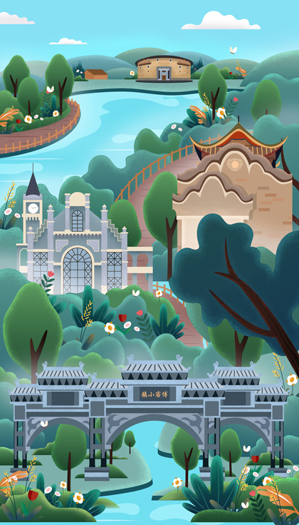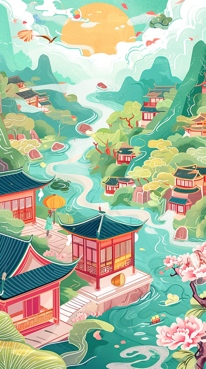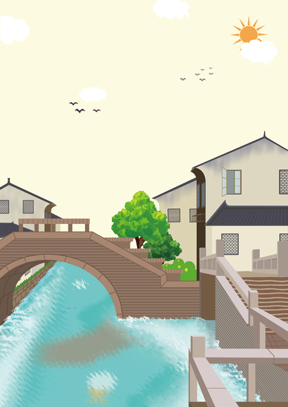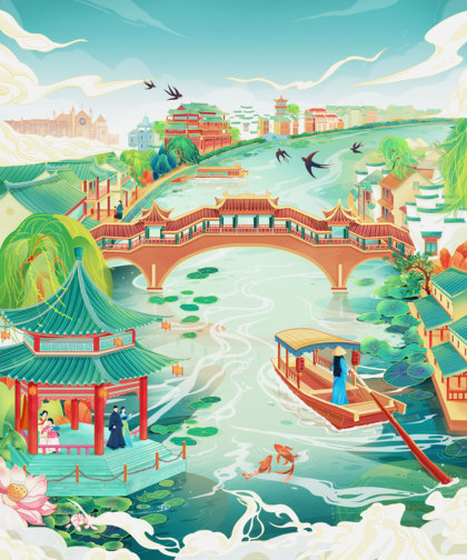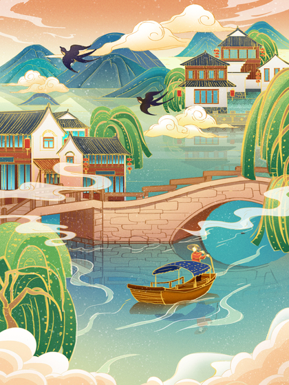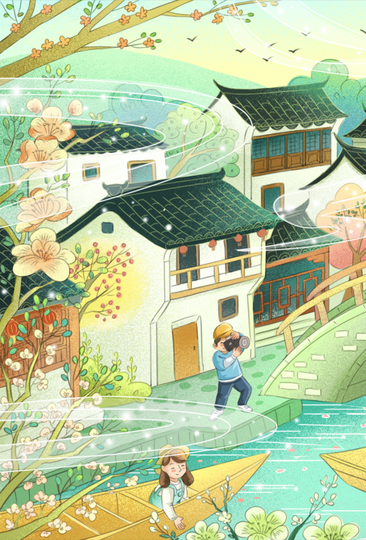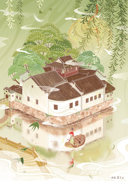 【商业插画~国潮风景区插画】周庄国潮风插画