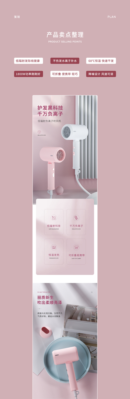吹风机详情页 卷发棒直发棒详情页电商详情页海报设计
