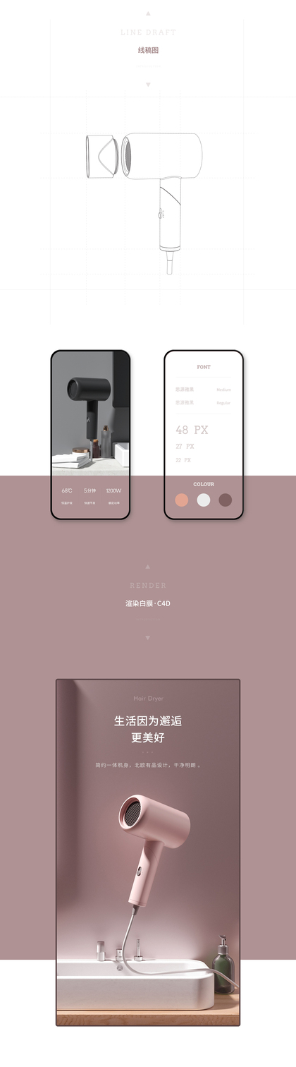 飞科吹风机详情页分享|三维渲染|飞科xMAX