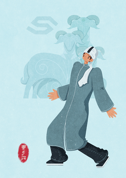 56个民族扁平插画人物——东乡族