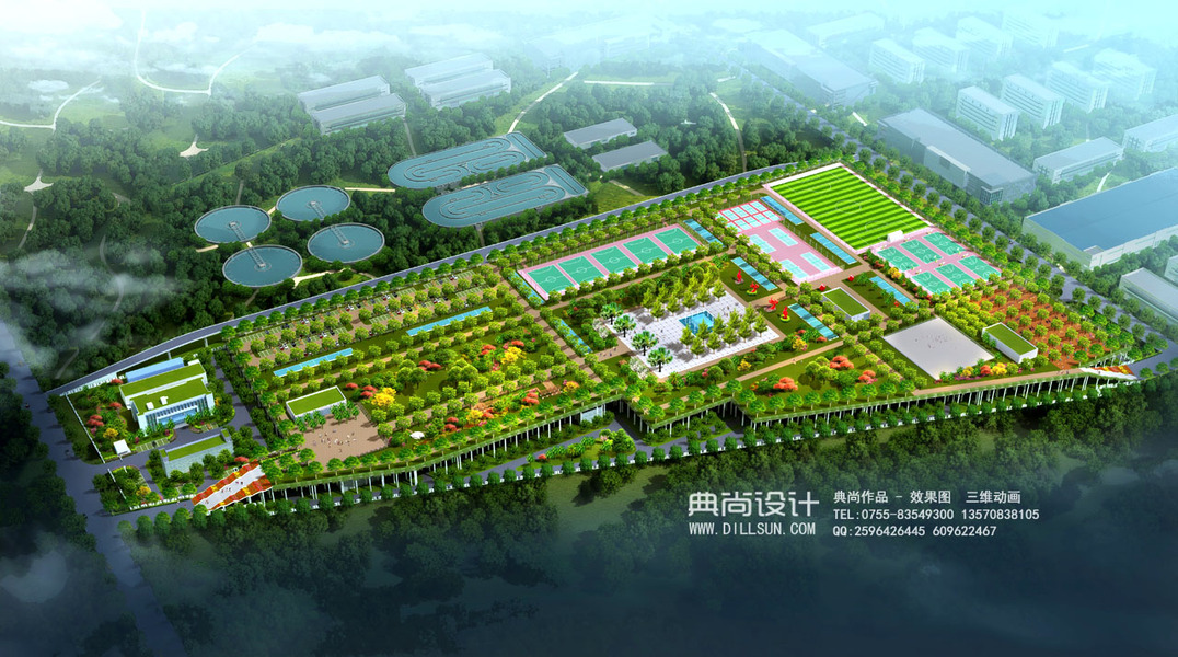 污水处理厂效果图作品