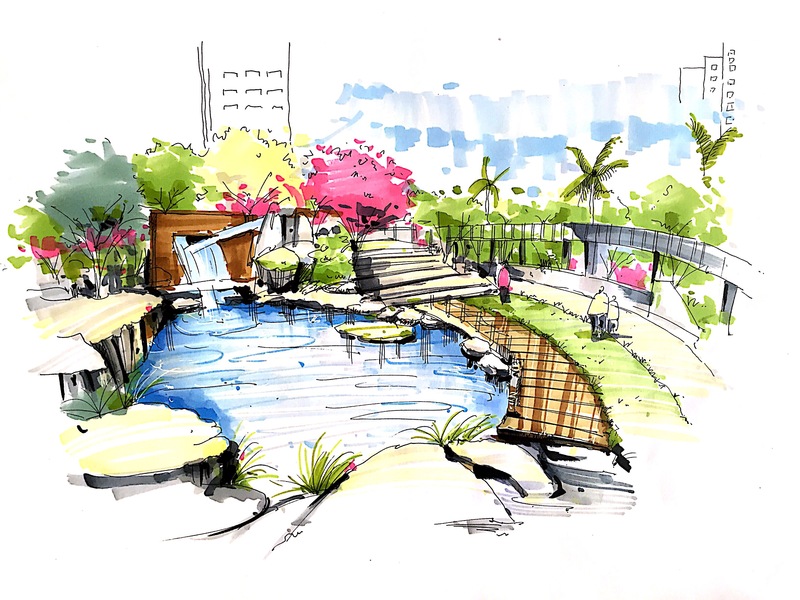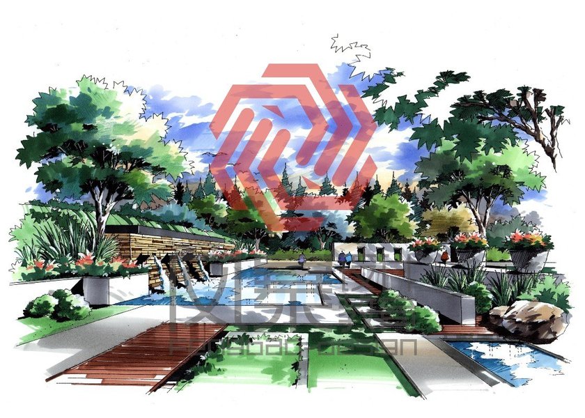 园林景观设计手绘表达/园林景观效果图手绘/风景园林