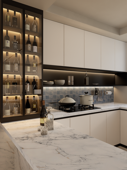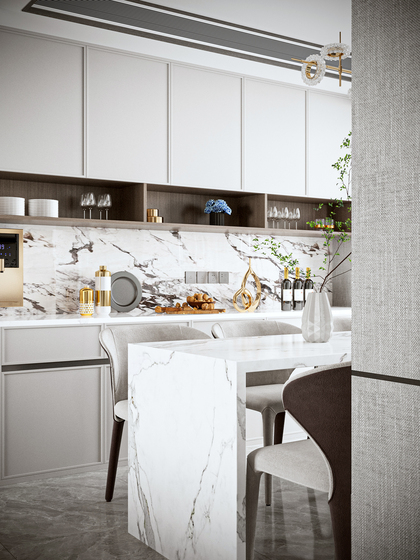近期渲染-现代大平层客餐厅
