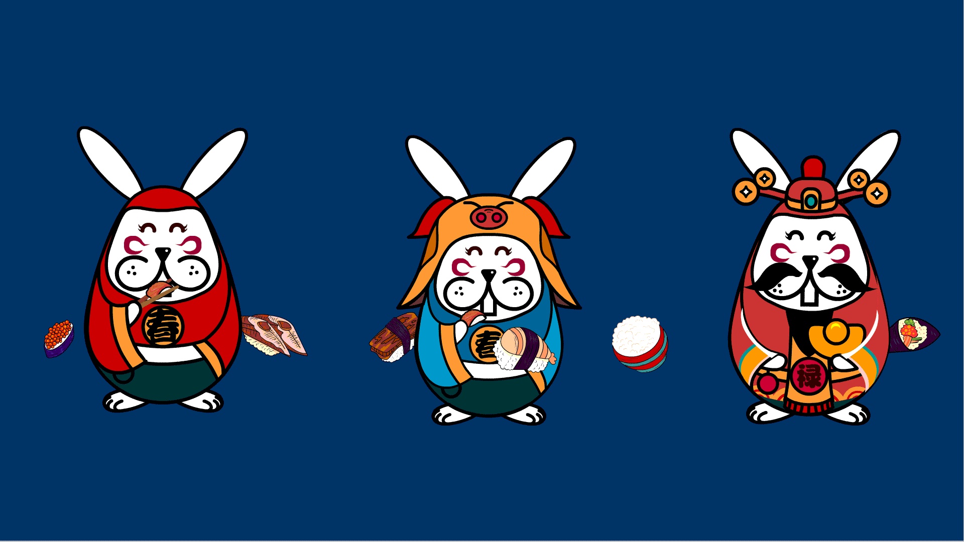 兔年贺图——福兔百态系列插画|IP设计