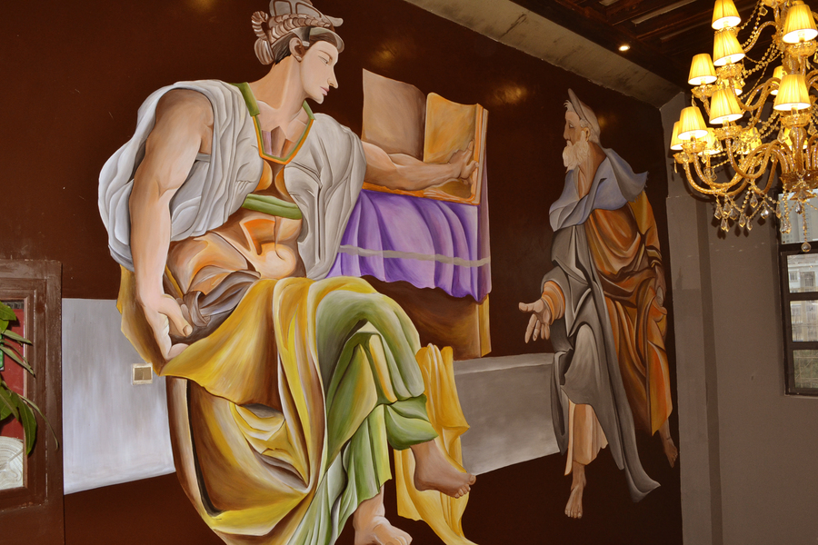 云南壁画穹顶壁画天顶墙绘手绘墙欧式油画