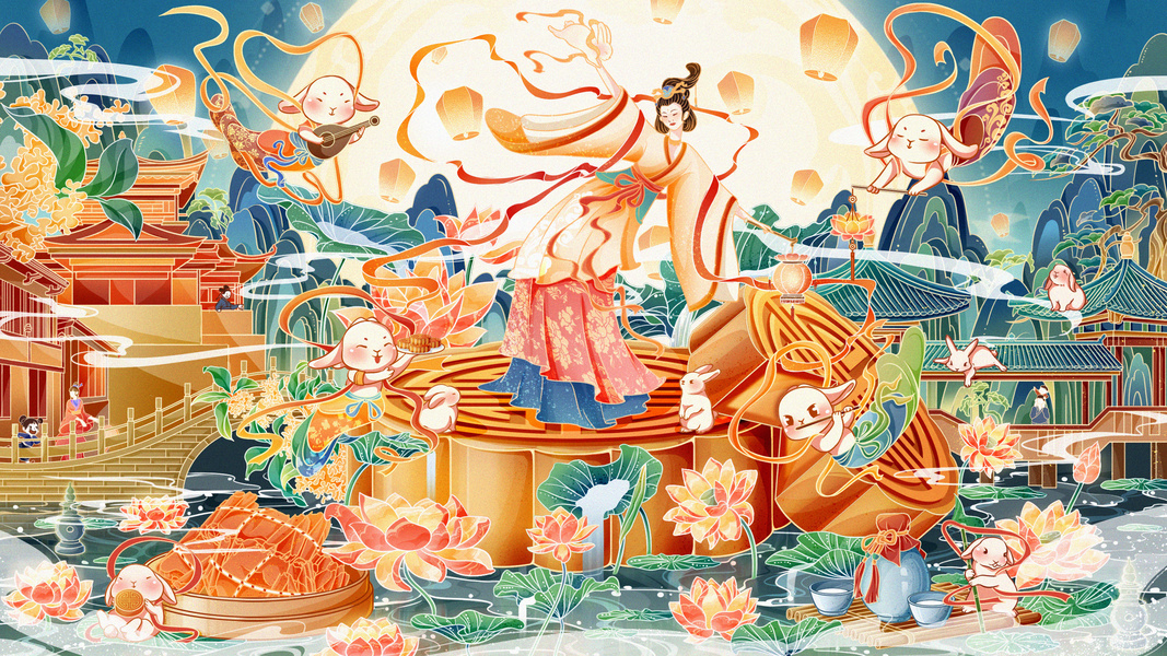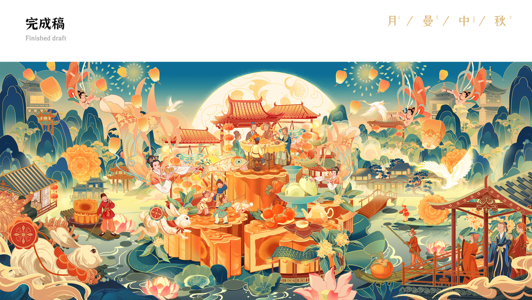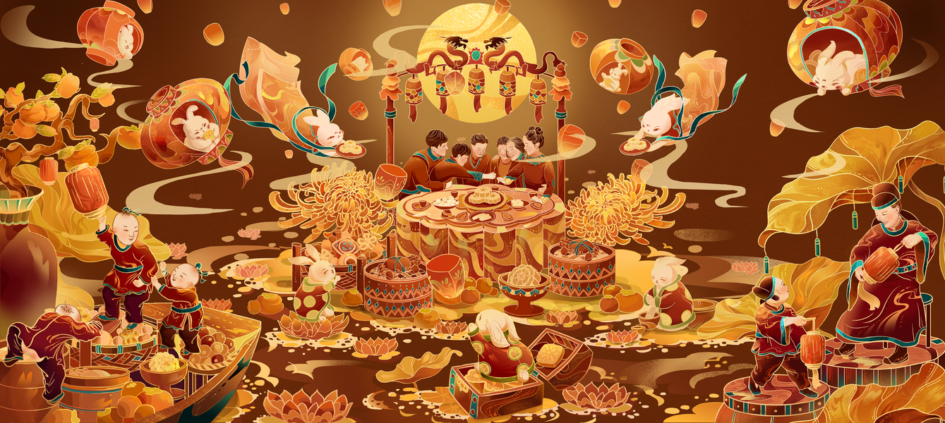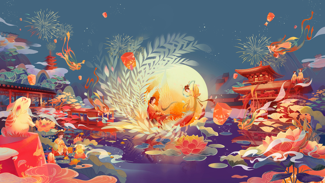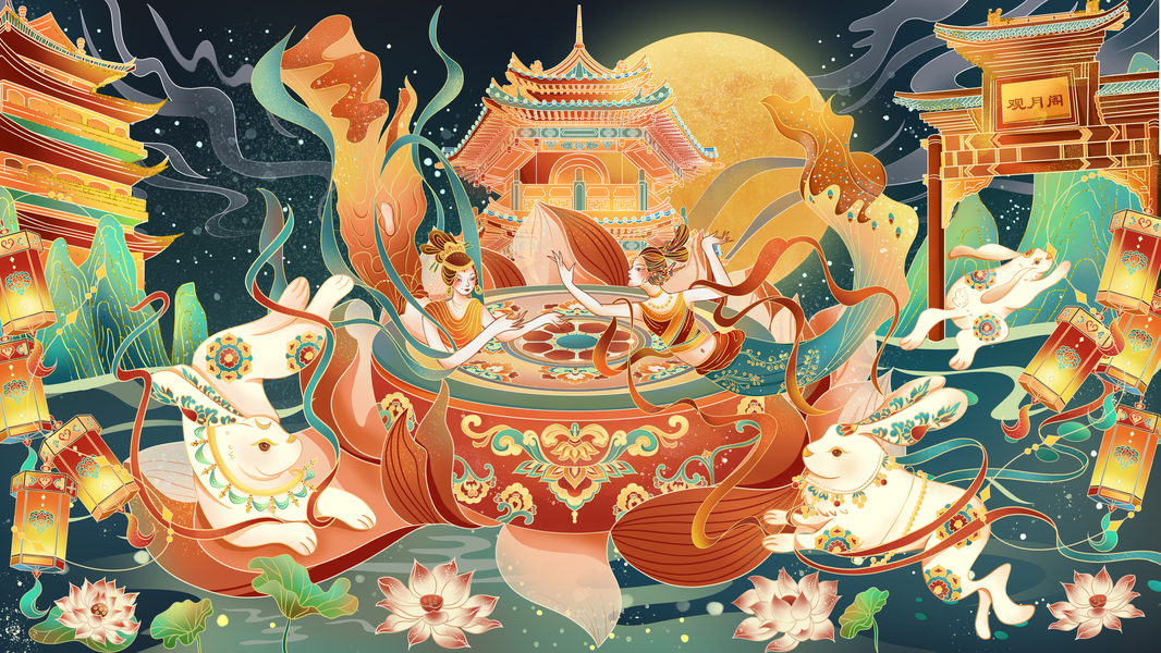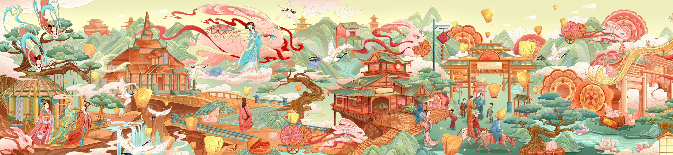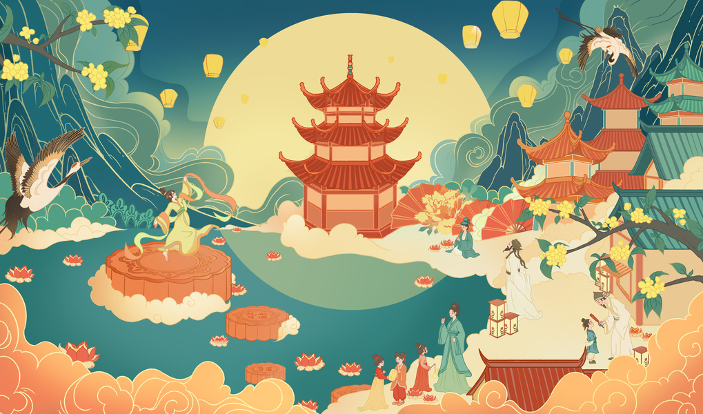 唐朝中秋节日氛围感礼品商业插画手绘包装