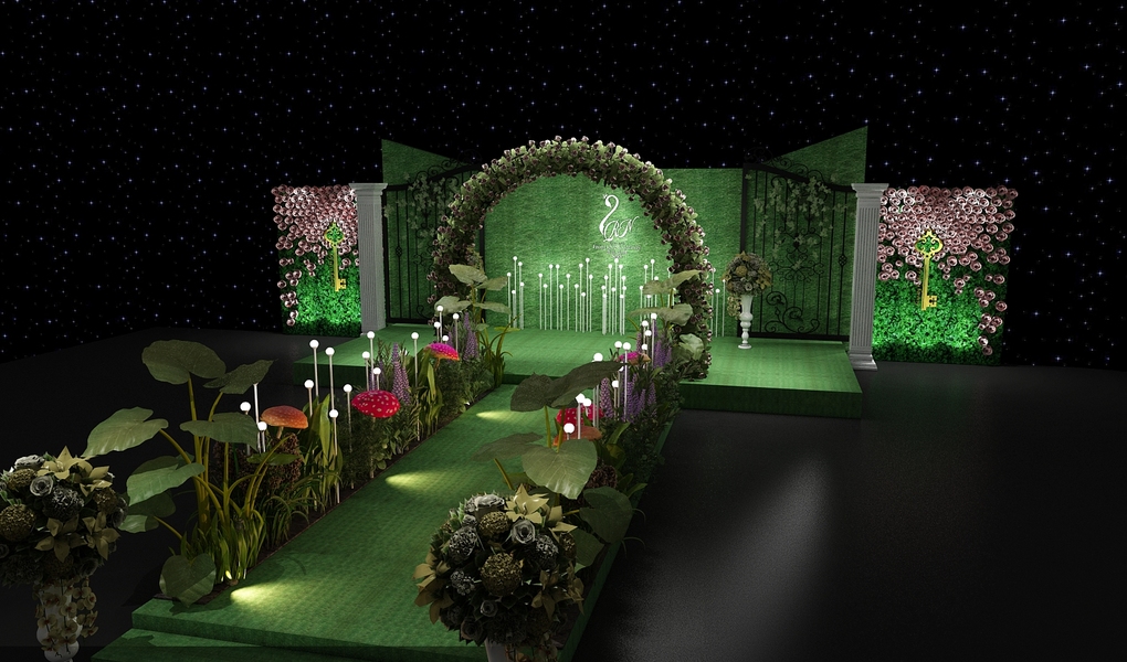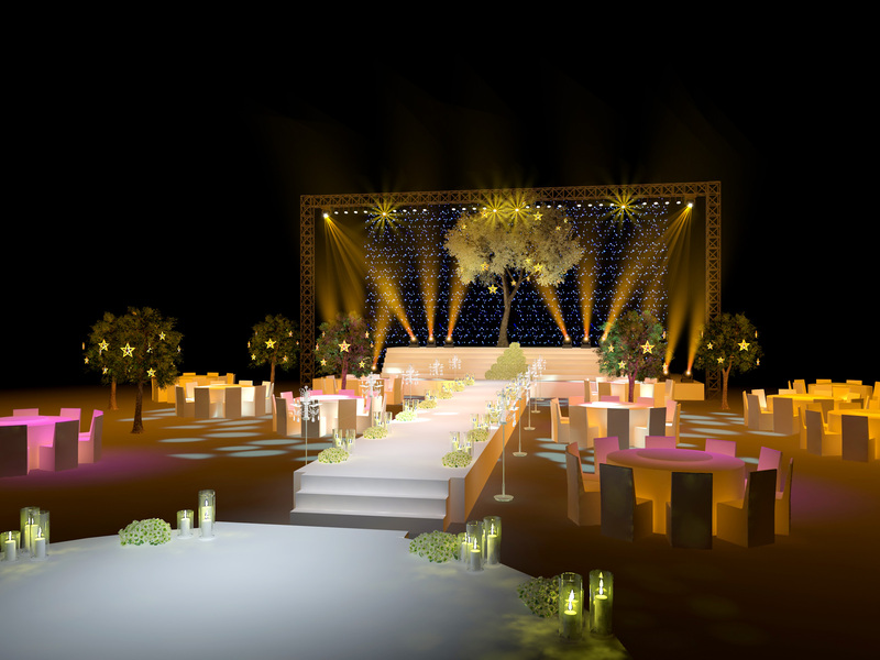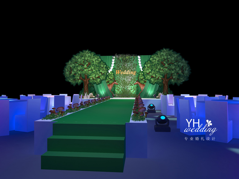YHwedding婚礼设计:一树一世界 树主题婚礼舞台3D效果图