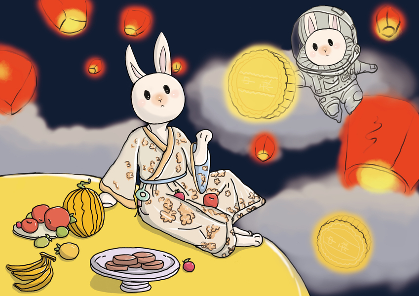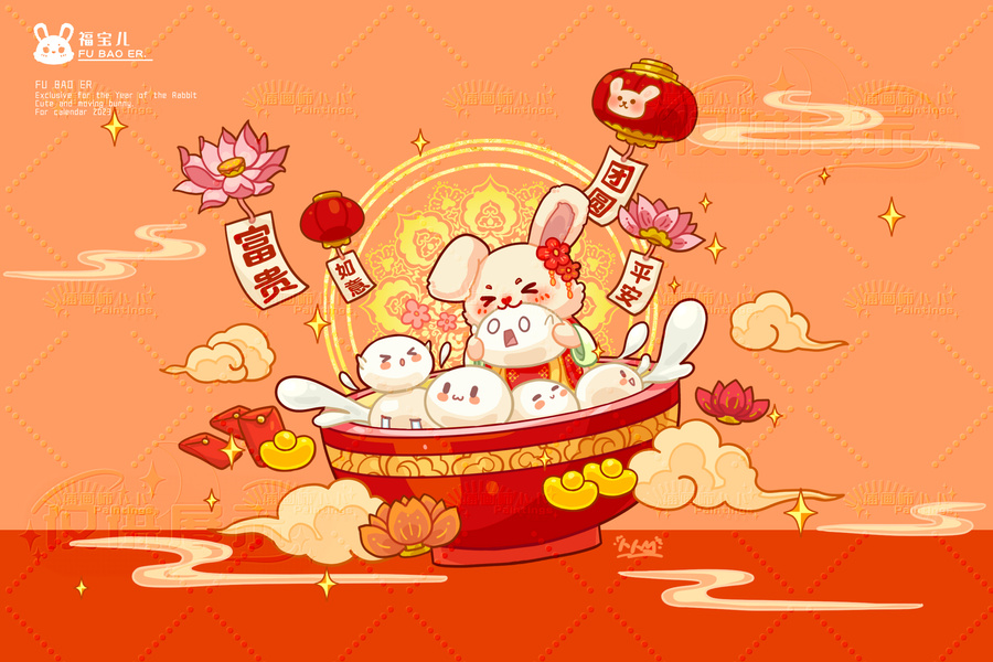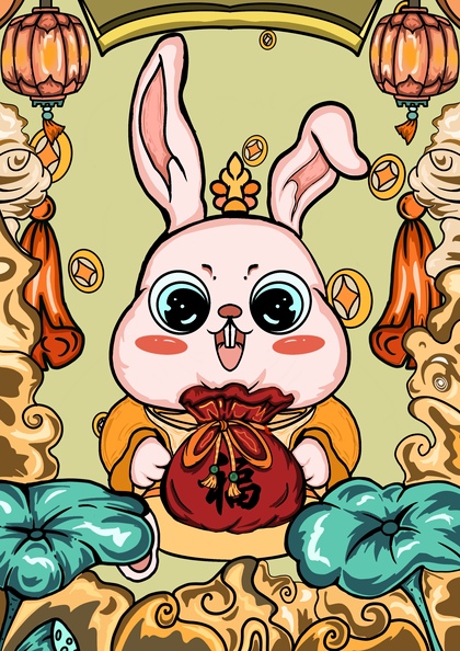 #站酷梦笔#cute and adorable bunny dressed in Chine