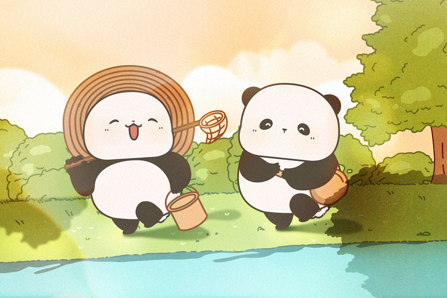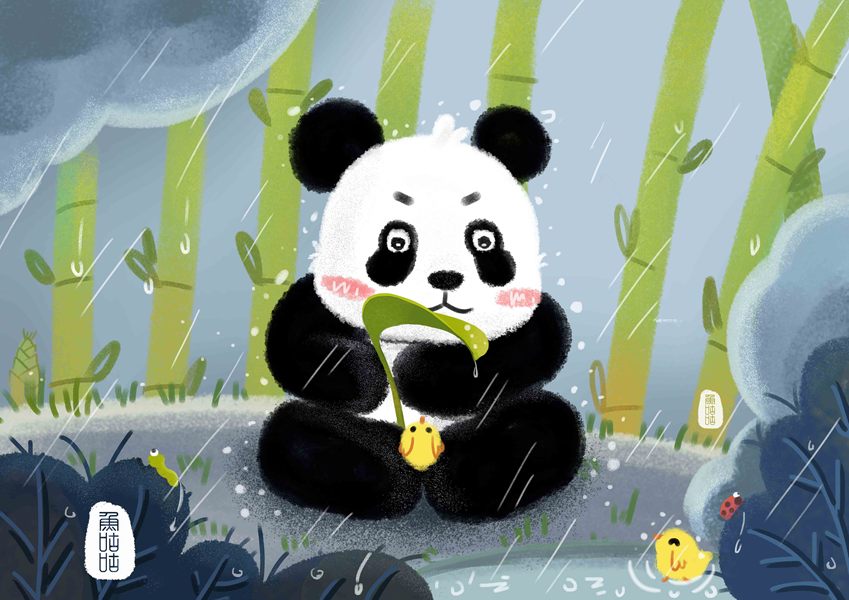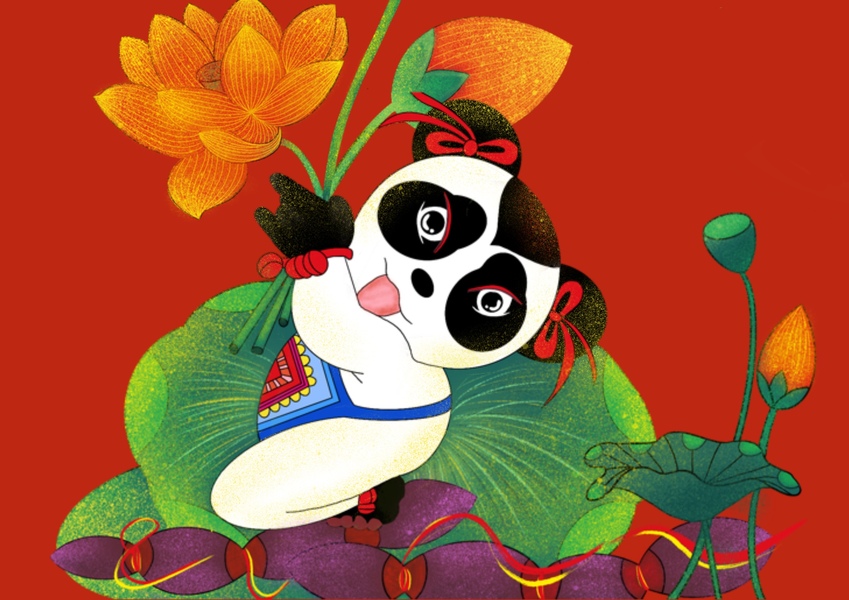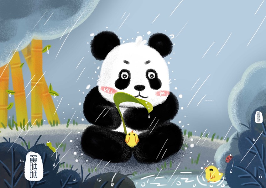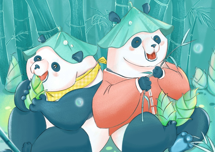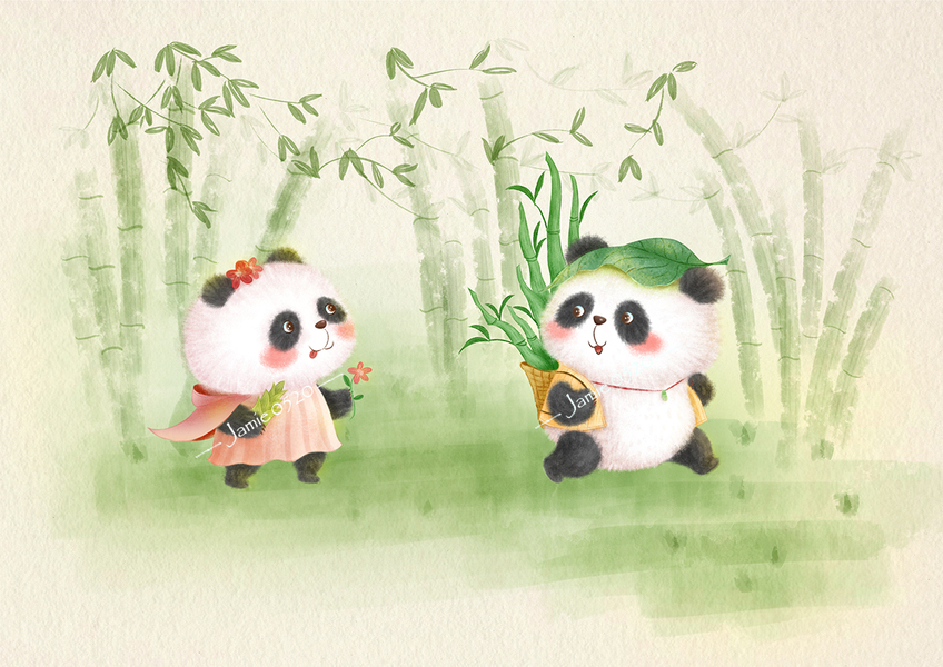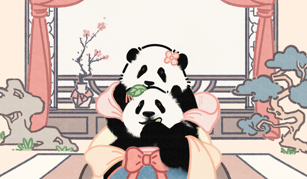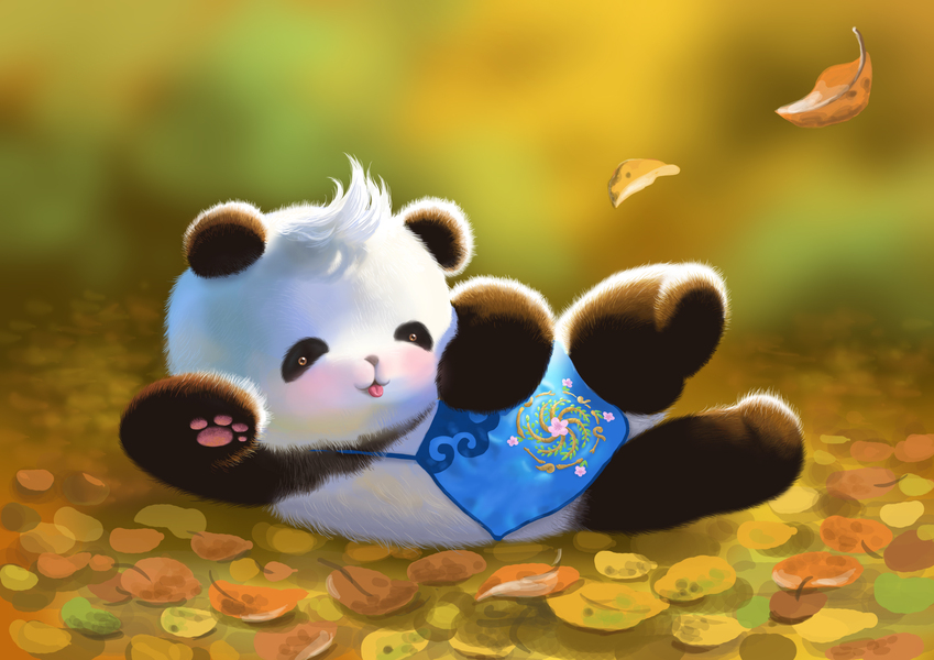 大熊猫渝爱,大熊猫和花和叶(近期画的心上熊)