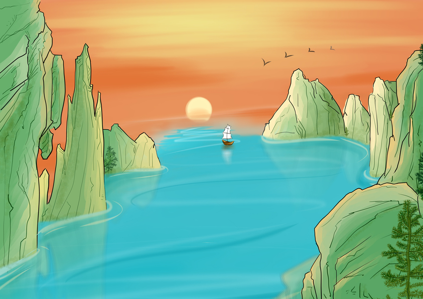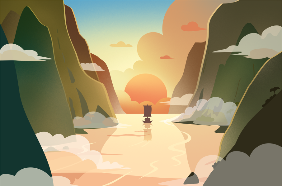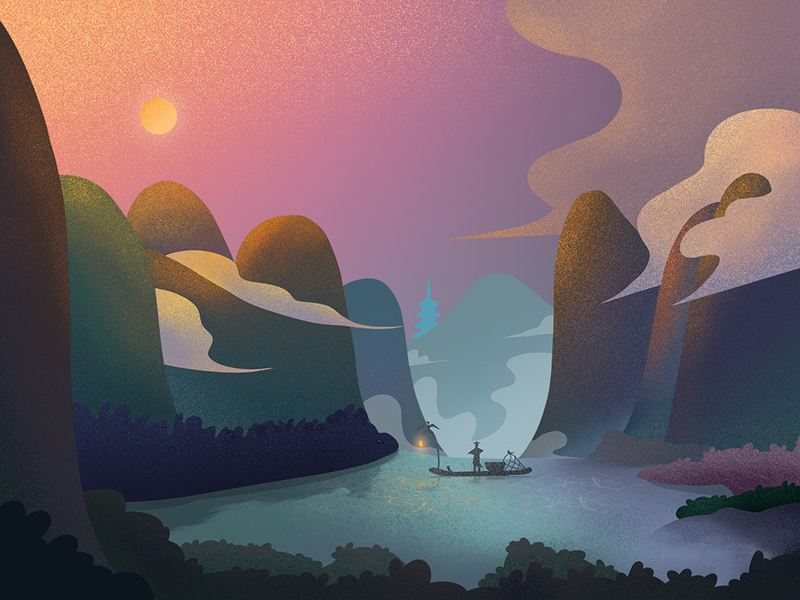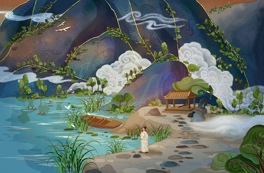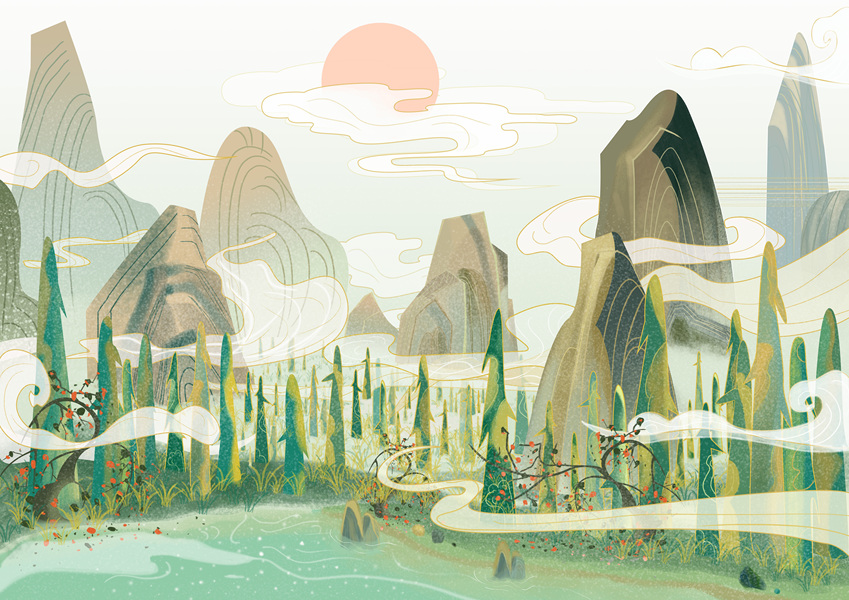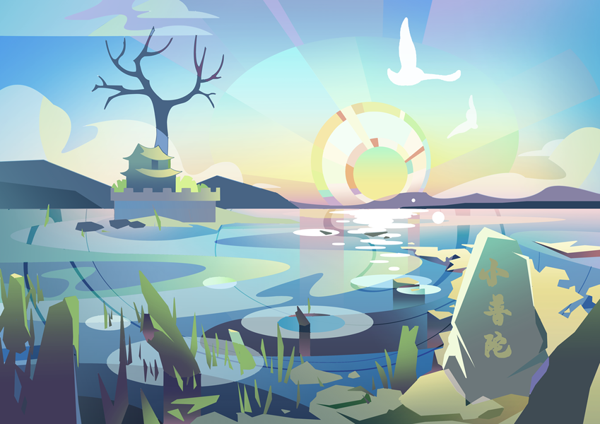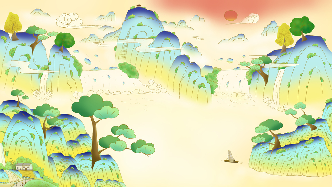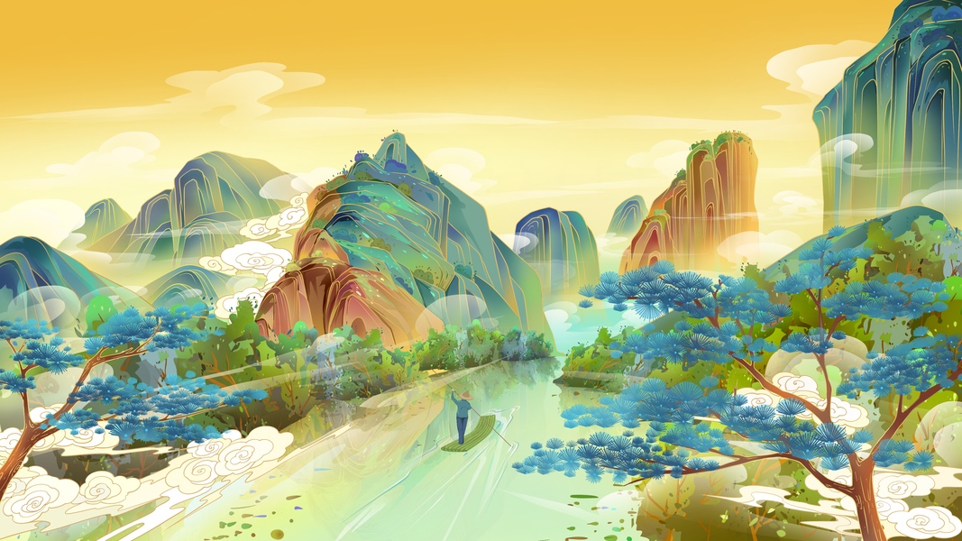 古诗场景-Q版诗人-天门山-西湖-登鹳雀楼-洞庭湖-古风