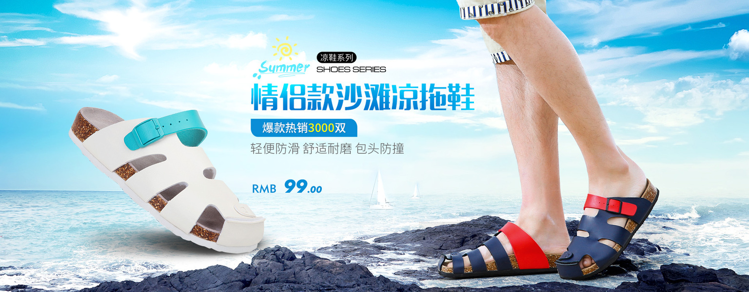 淘宝 天猫鞋类 蓝色简洁的广告 夏季清爽海报