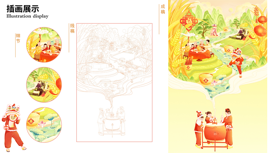 乡村喜庆春节|国潮插画
