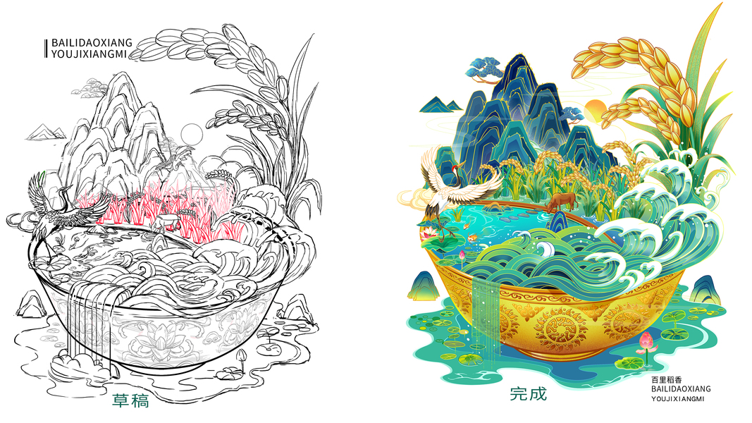 大米包装设计-百里稻香【国潮插画】