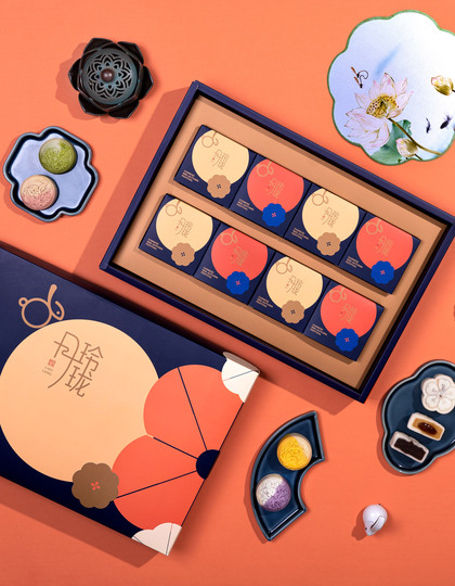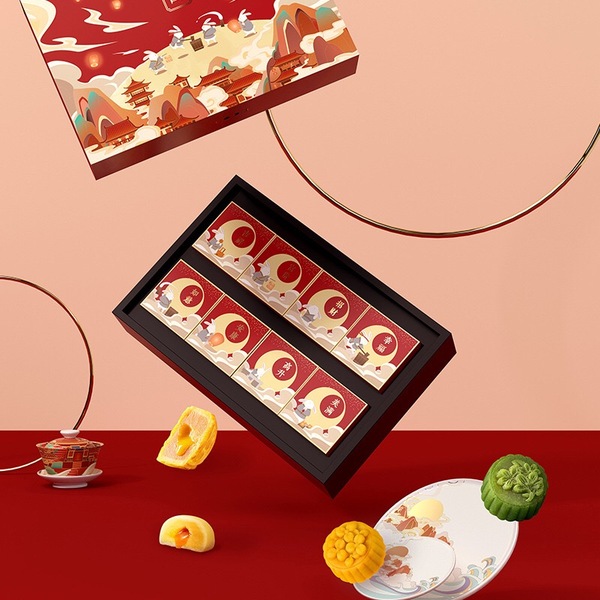 月饼产品拍摄-桃山皮/流心/广式月饼-月饼国潮插画包装