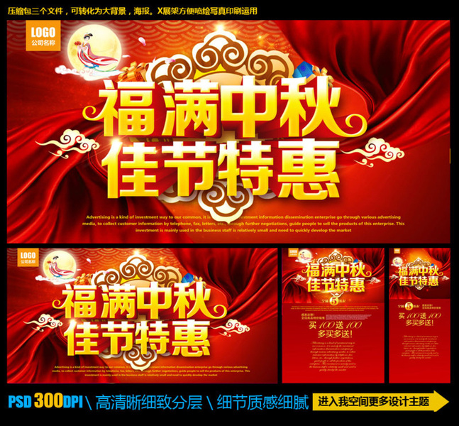 中秋节贺卡吊旗物料设计