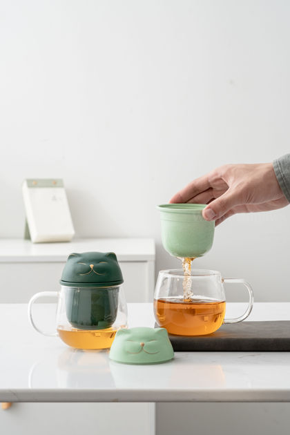 玻璃办公杯/萌猫办公杯/现代简约风/茶具/电商摄影拍摄