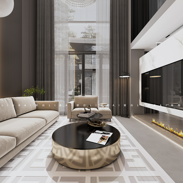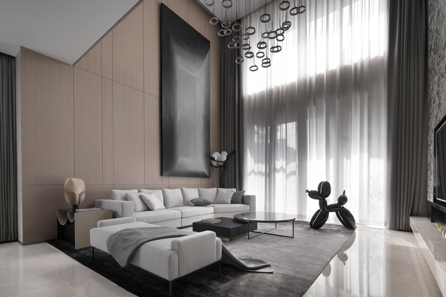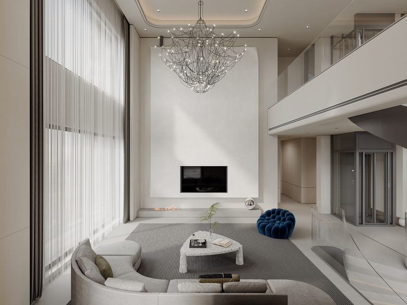 挑空别墅极简效果图表现