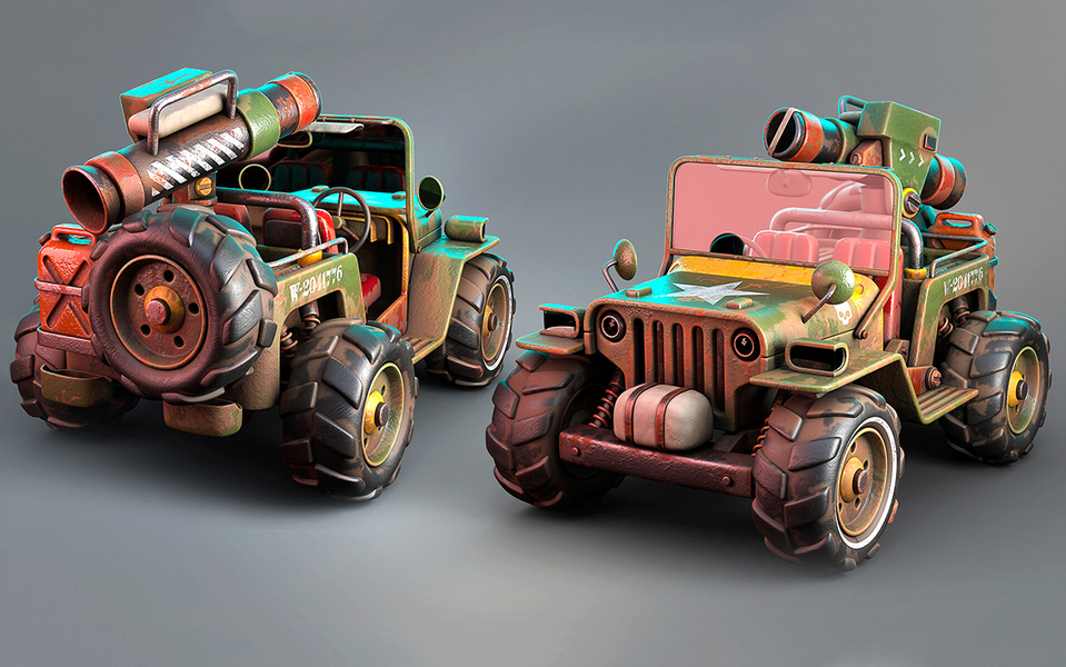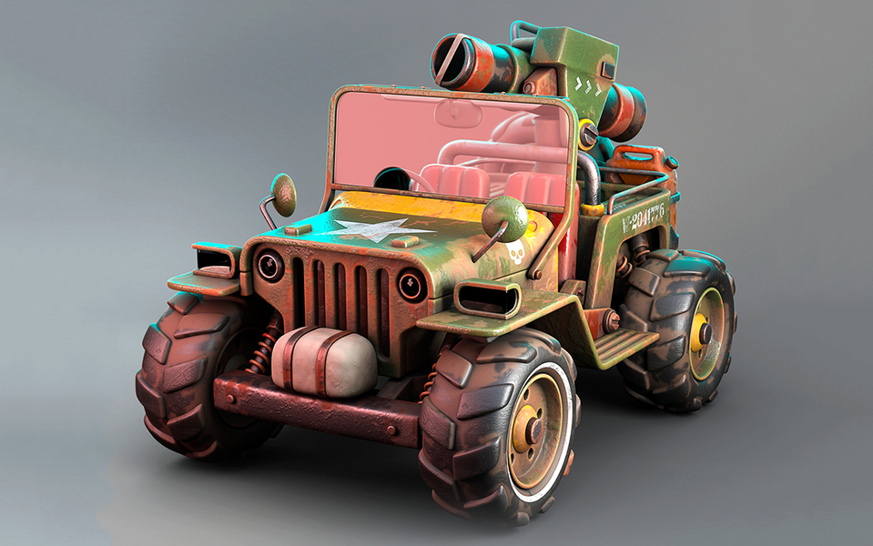 3dmax-Q版带大炮的小吉普车模型制作教程。3dmax建模