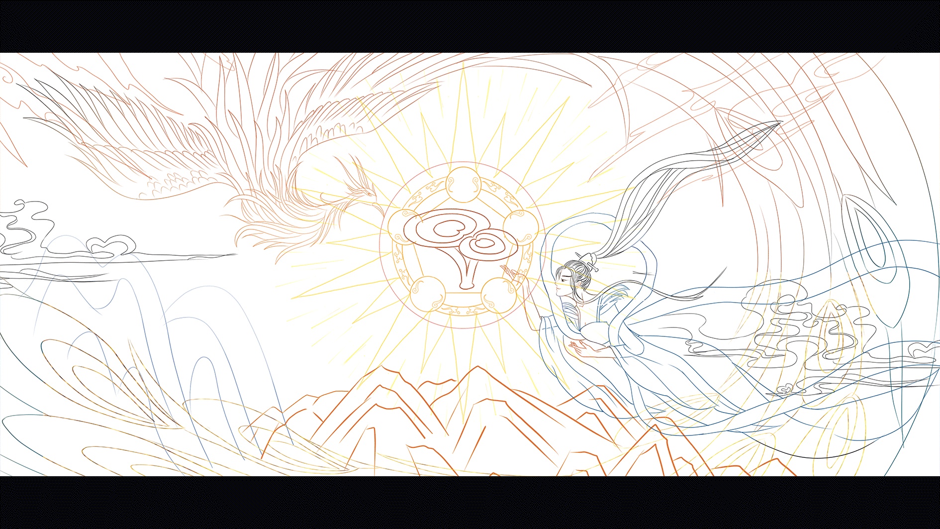 原创国风商业插画中国神话故事系列——精卫填海