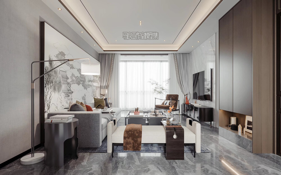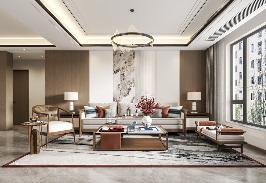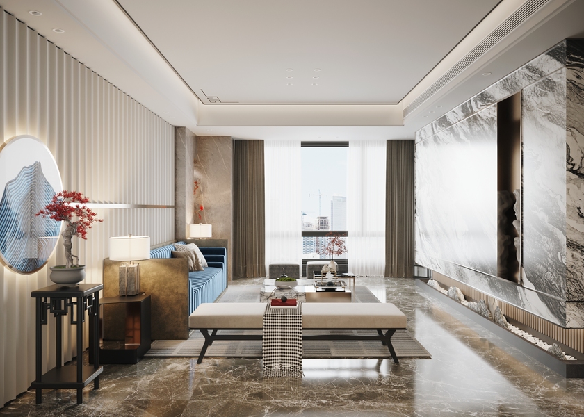 新中式风格装修,山水空间古韵满满,尽显朦胧美感!