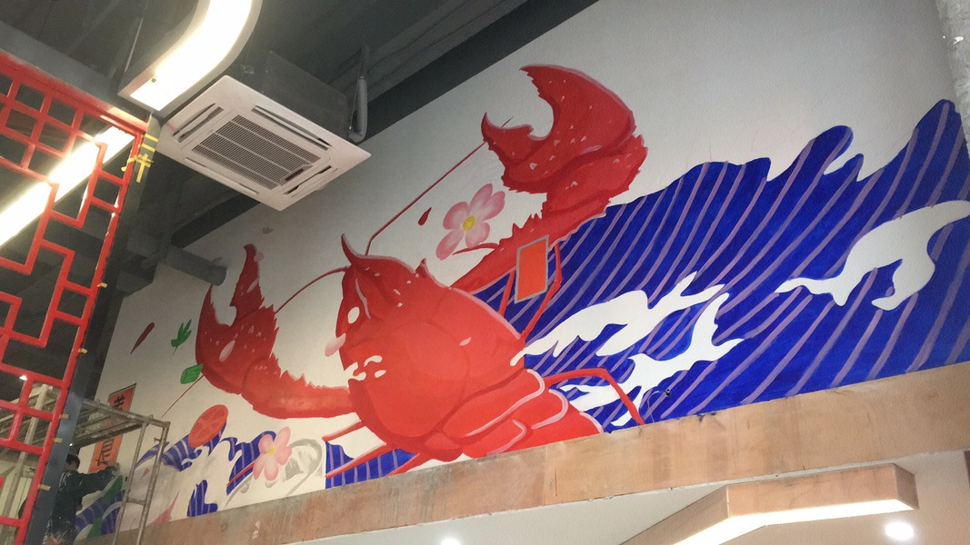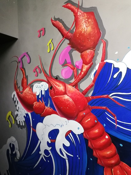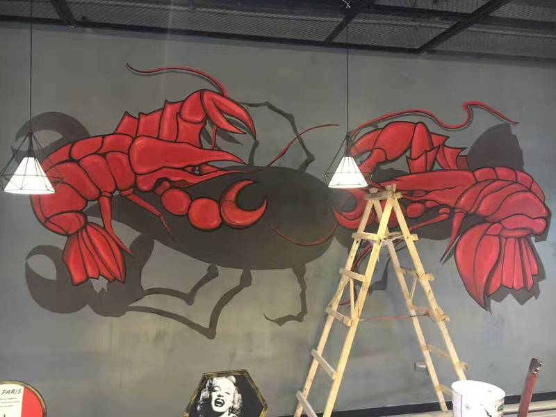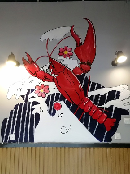 龙虾店墙体彩绘壁画涂鸦