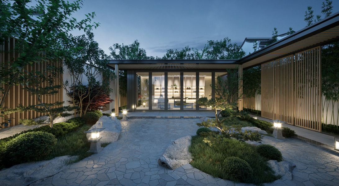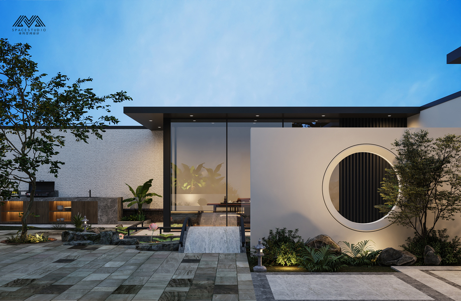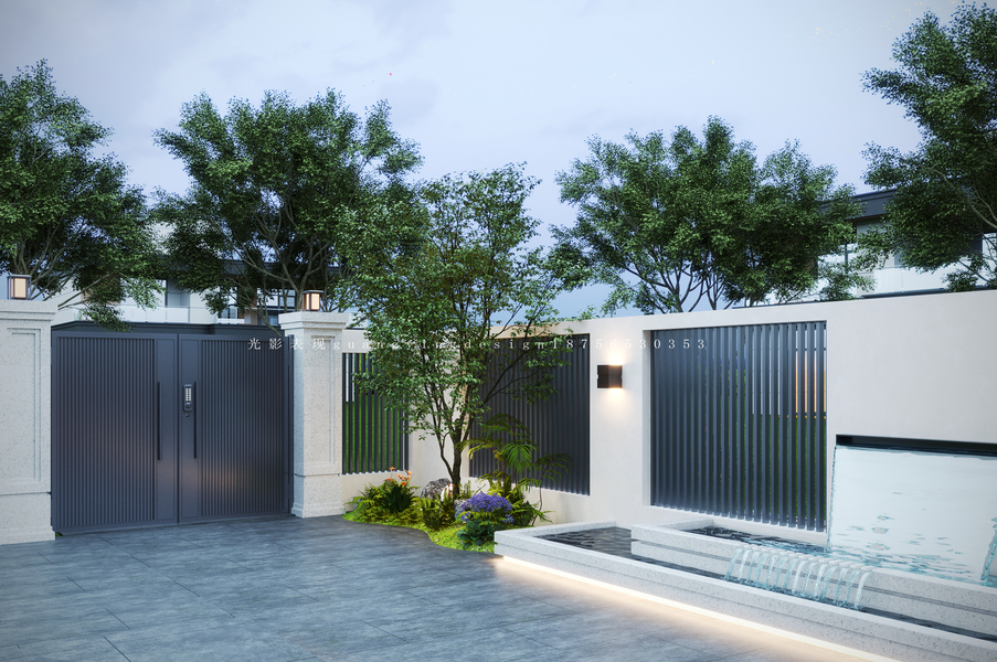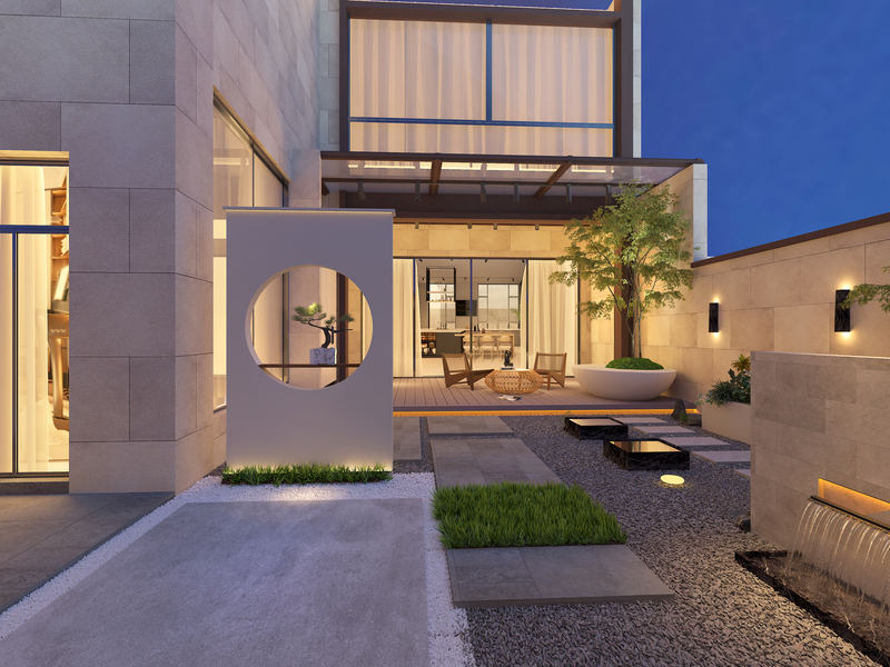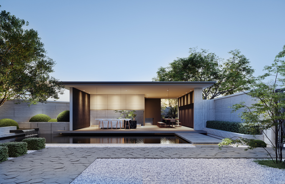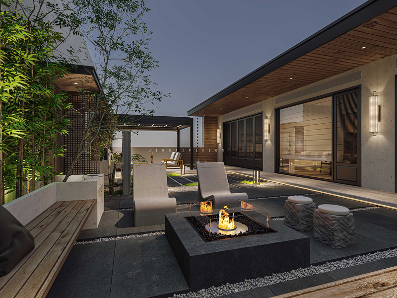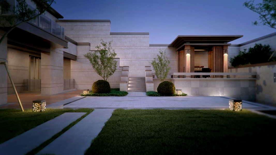 第五十八期keyshot户外别墅场景源文件游泳池庭院场景