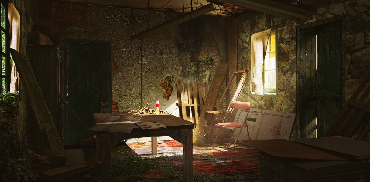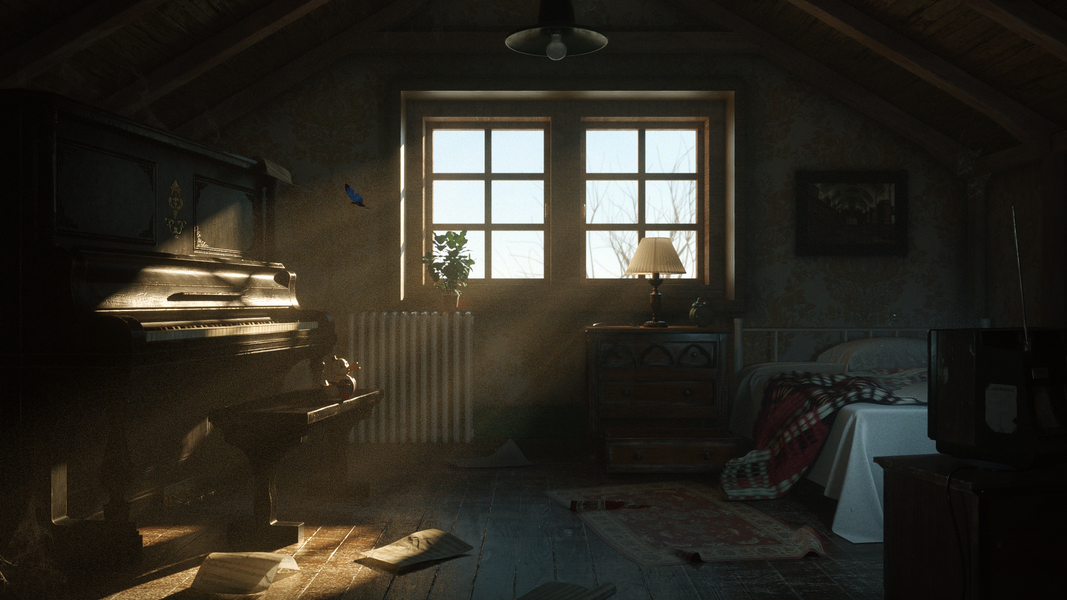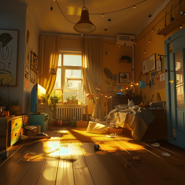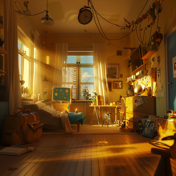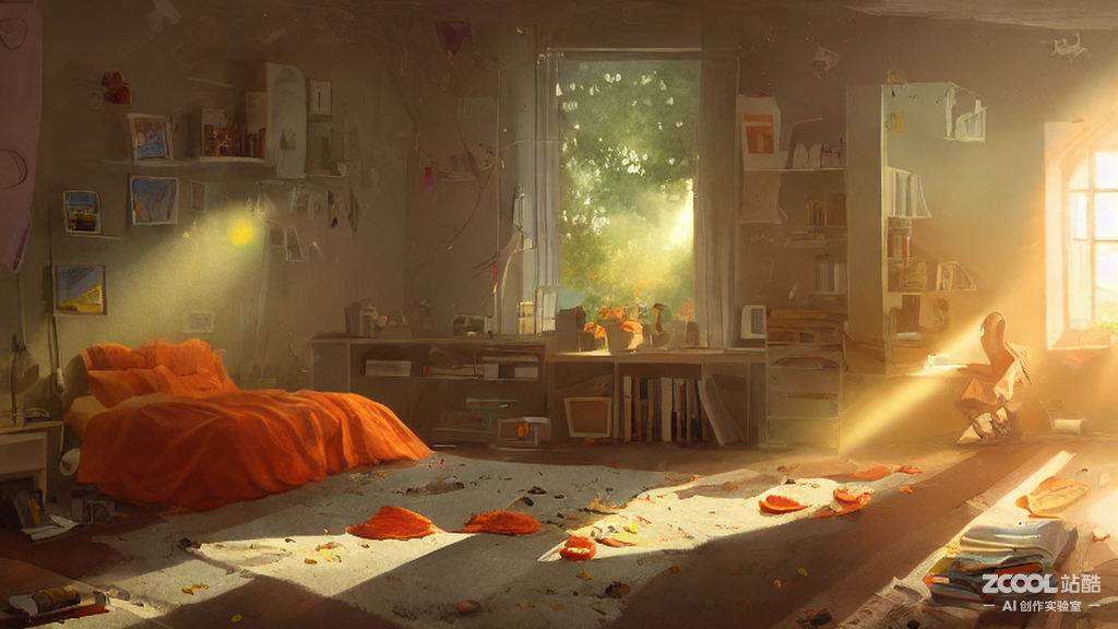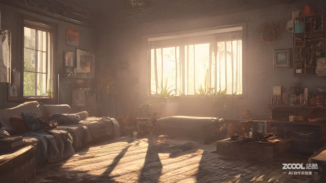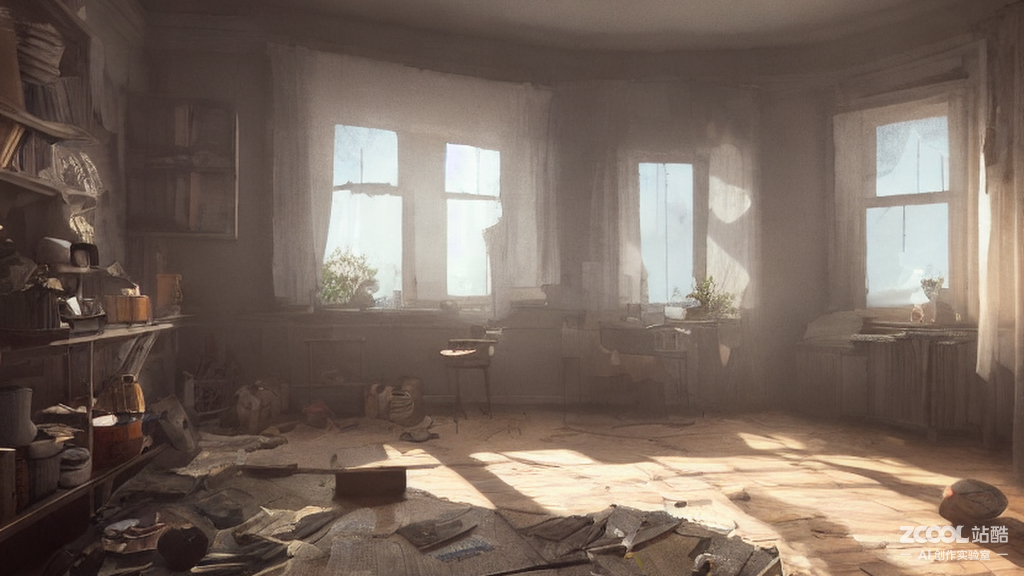 #AI创作实验室#阳光洒进老旧但整洁干净的房间