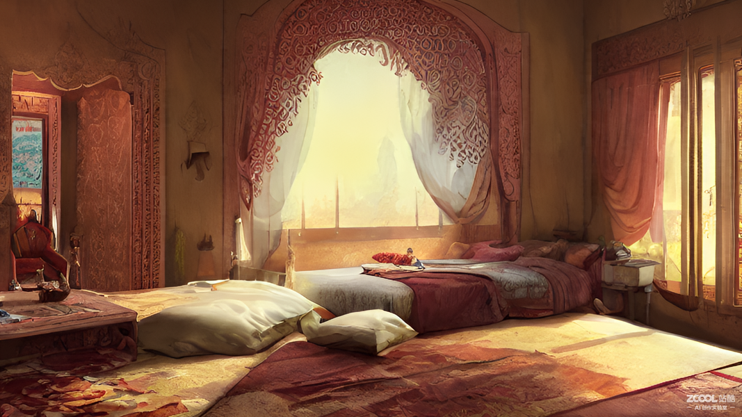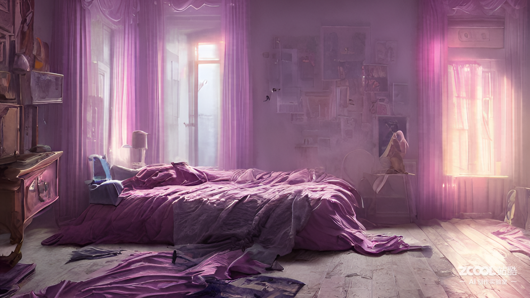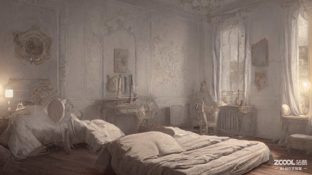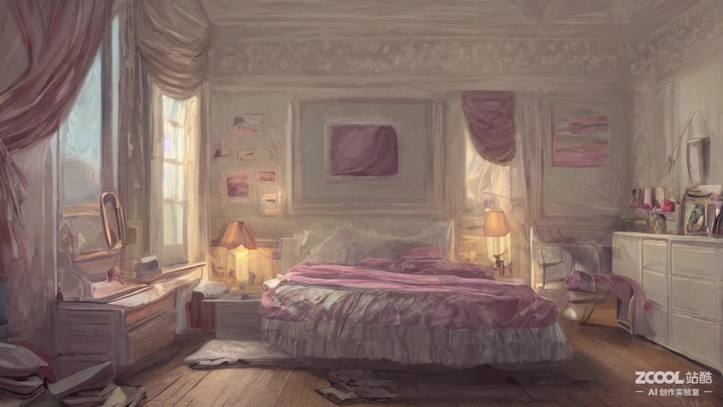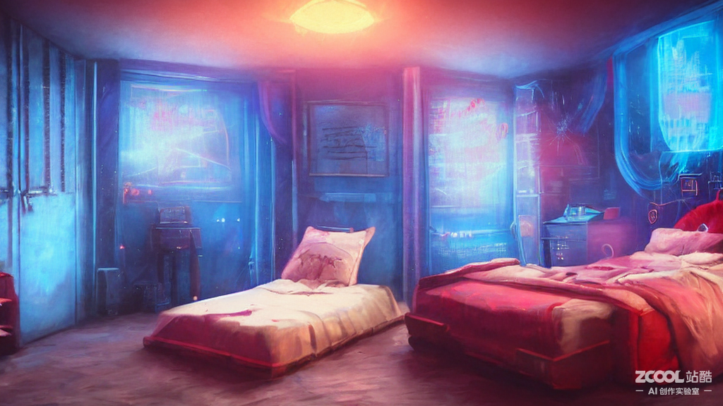#AI创作实验室#卧室,超逼真,绚丽色彩,环境灯光,概
