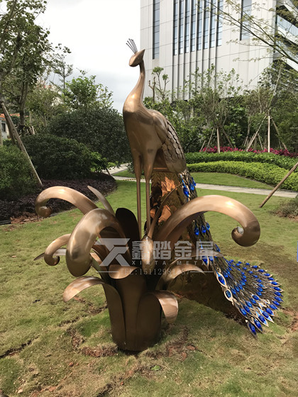 园林不锈钢孔雀雕塑、华美却不娇媚随遇而安有发达之说