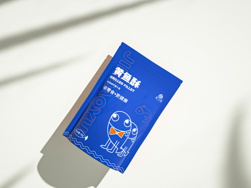 平面-海产品礼盒包装设计克莱因蓝烤鱼片鱿鱼丝条装色