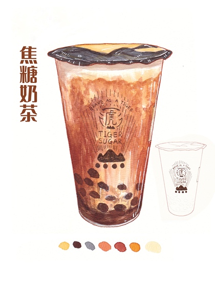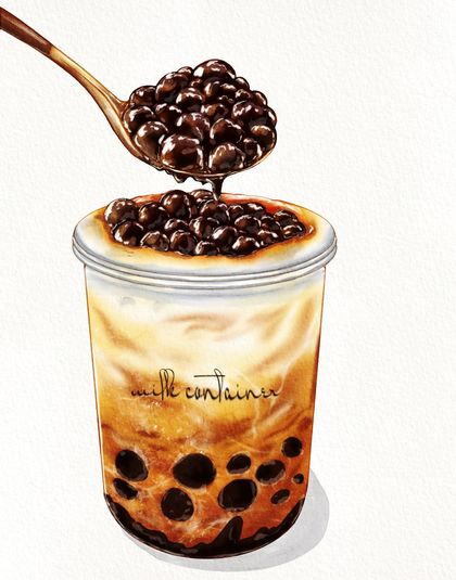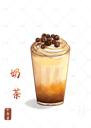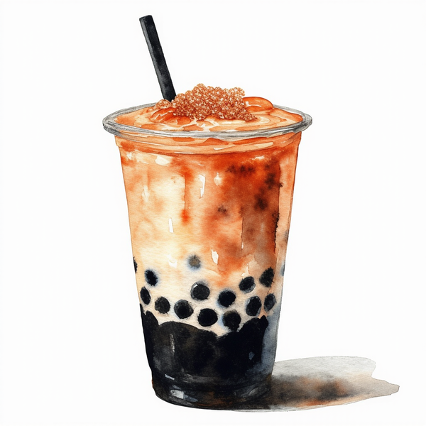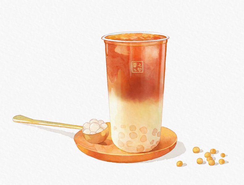 ipad水彩丨黑糖珍珠奶盖奶茶