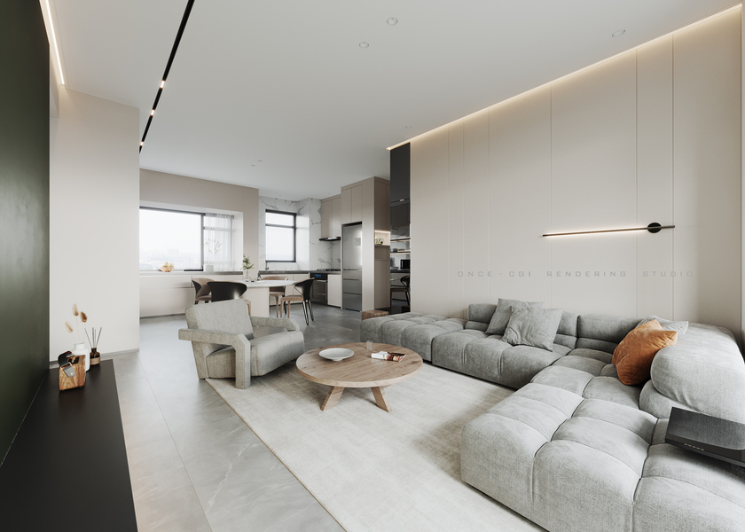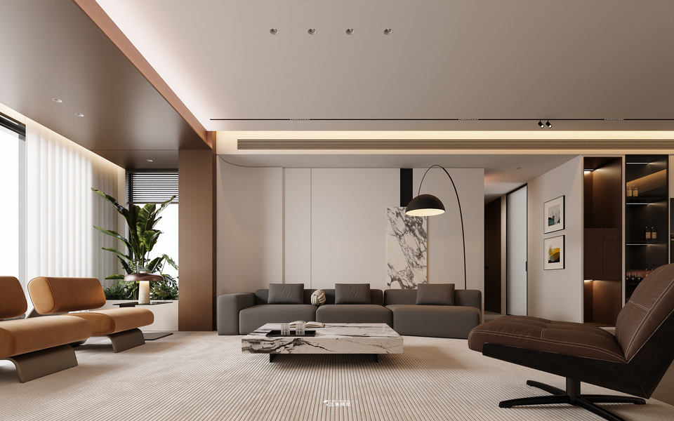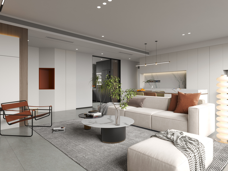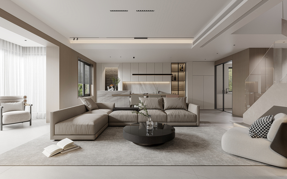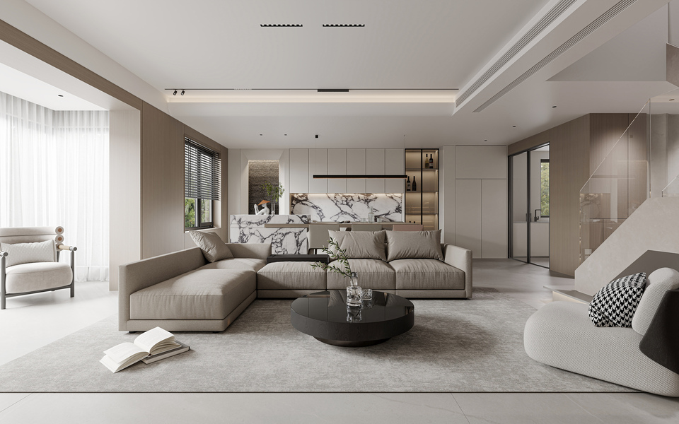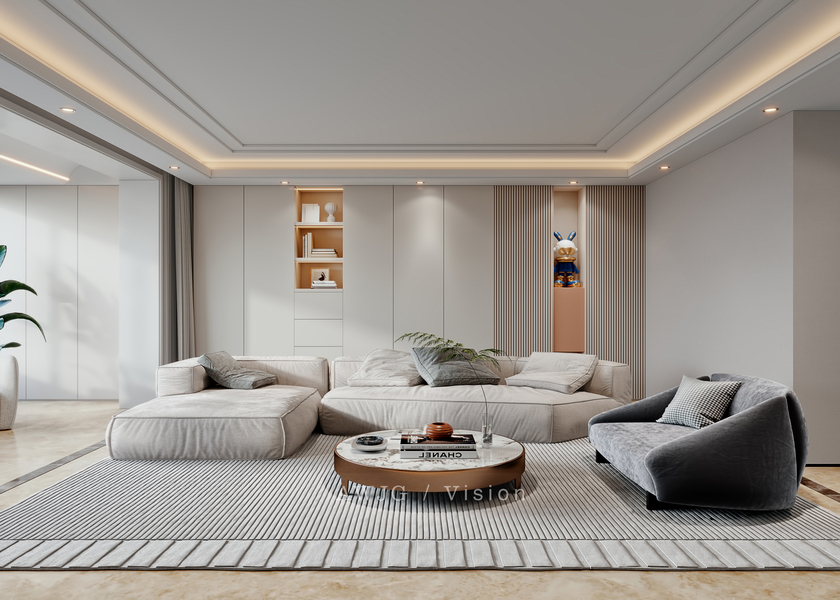 意式简约丨现代简约丨效果图设计丨平层丨奶油丨极简丨