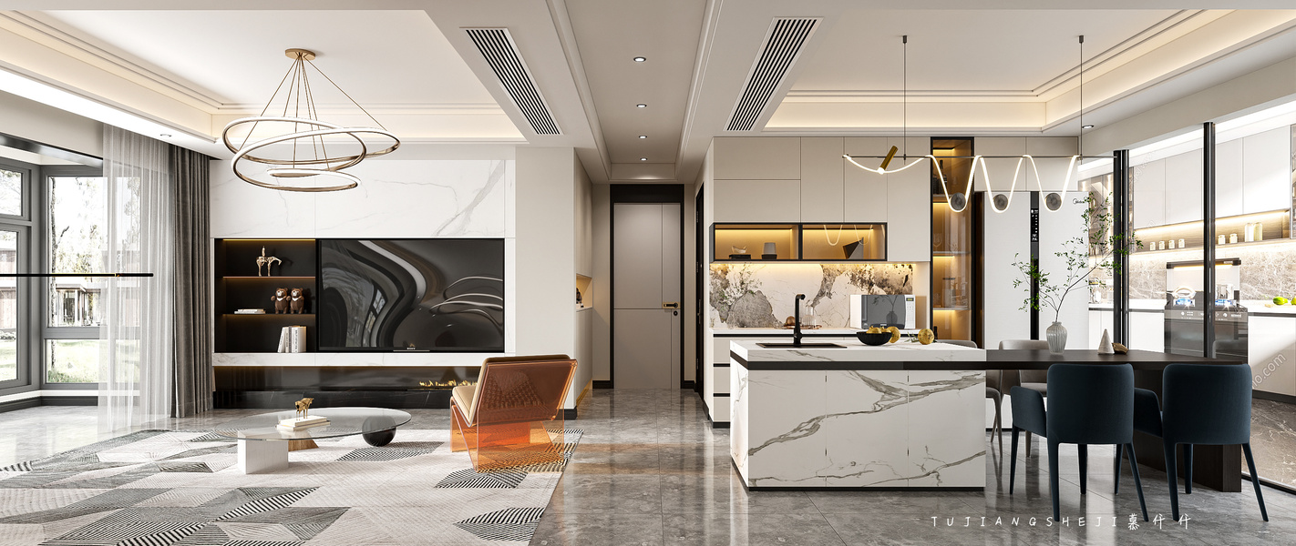 深圳装修:海纳公馆现代简约风设计,真的太爱这风格了