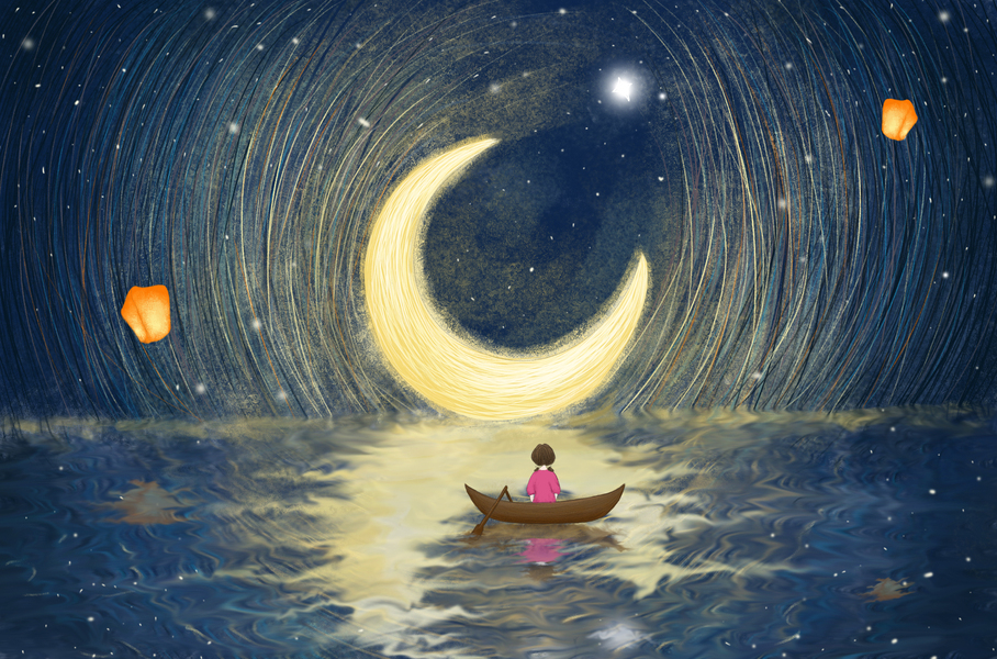 【故事插画】陪着月亮一起孤独